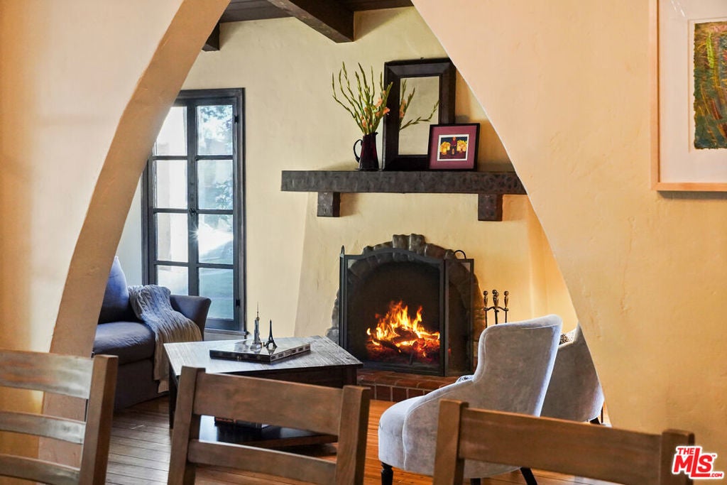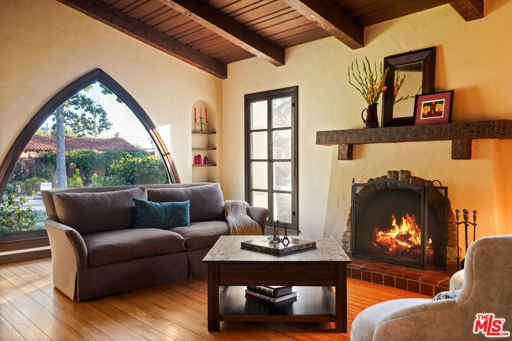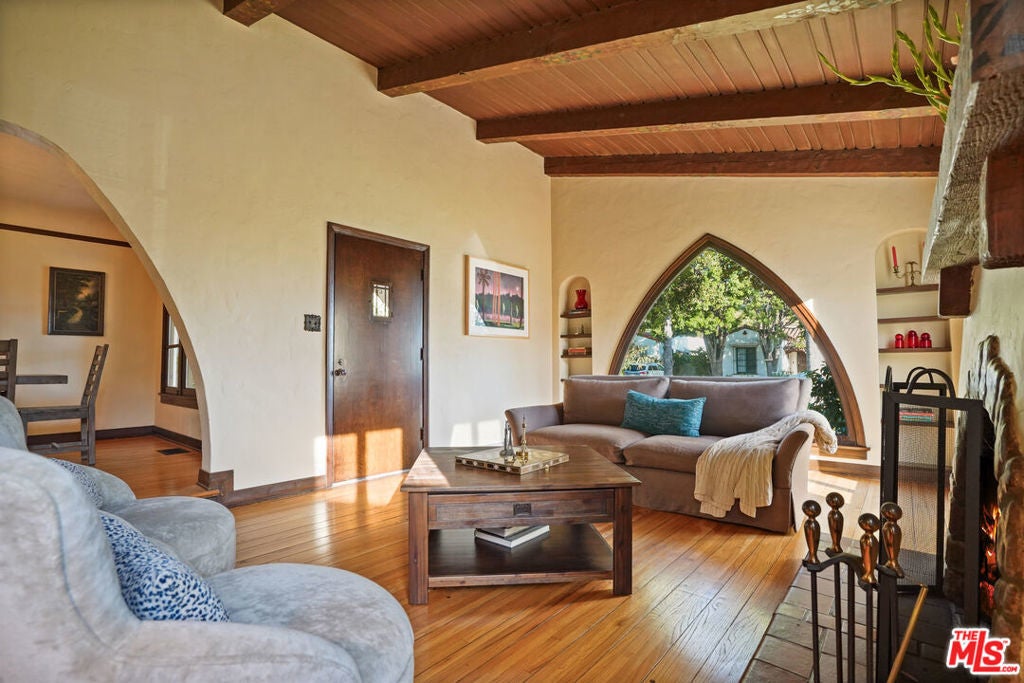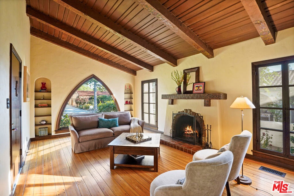 Set within a prime pocket of Glendale's historic Rossmoyne district, this Spanish home has been carefully updated while preserving its authentic character. Everything feels in step with the home's layout and original detailing, giving it a sense of consistency that carries from room to room. The living room is the defining space. A wood cathedral ceiling spans overhead, supported by exposed beams with original hand-painted stenciling. The same detailing continues onto the fireplace mantel. Peg-and-groove wood flooring adds texture underfoot, while an arched picture window brings in natural light throughout the day. The dining room sits just beyond, connected through gentle archways that keep the spaces open while still defined. It's positioned in a way that makes both everyday use and larger gatherings feel easy. The kitchen is well laid out with ample cabinetry, colorful tilework, and a breakfast area that brings in morning light. At the rear of the home, the family room adds a second living space and opens directly to the backyard. A true family room, it's well suited for movie nights and relaxed evenings, with direct access to the backyard. Three bedrooms are arranged along a central hallway, all well proportioned and flexible in use. The primary offers a comfortable footprint and storage, while the additional bedrooms work just as well for guests or workspace. The main bathroom has been updated in recent years, and a second bath adds convenience. The backyard is simple and fun, with a paved patio, a stretch of grass, and mature landscaping. A well-established avocado tree provides shade and a natural focal point. Rossmoyne is known for its gently curved streets, mature trees, and collection of well-preserved character homes, giving the neighborhood a distinct identity within Glendale. Blocks away from Whole Foods, Trader Joes, Fish King and the heart of the neighborhood; Nibley Park, it's the kind of setting where homes feel established and streets feel quiet, while still within easy reach of everything Glendale has to offer.