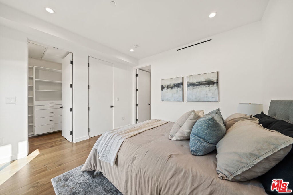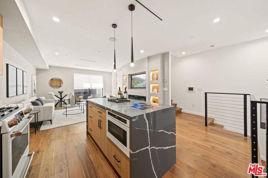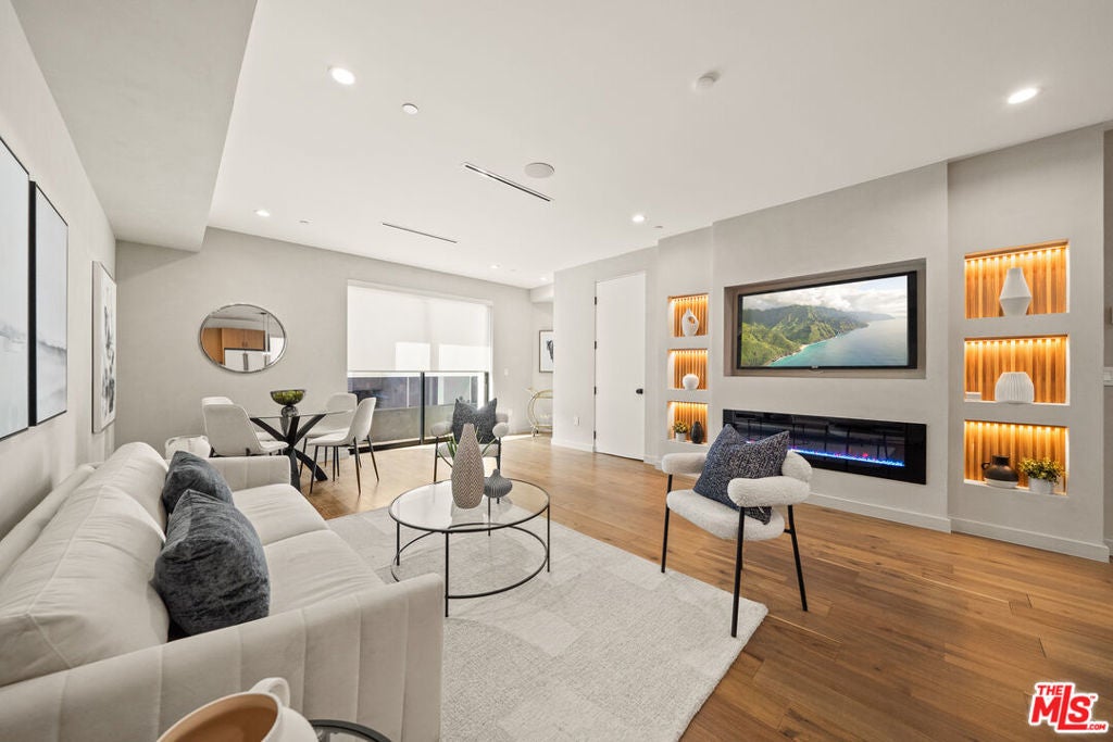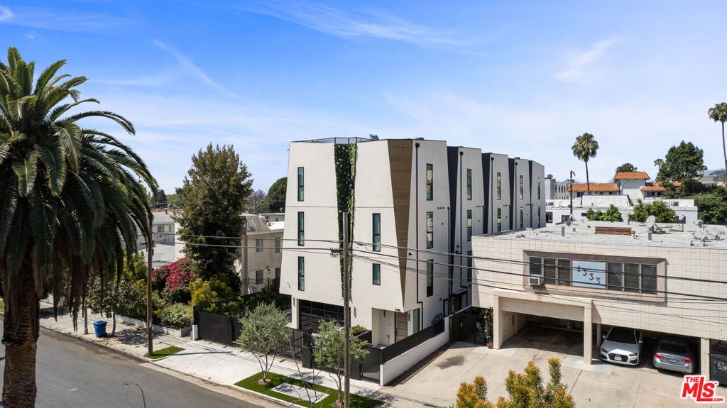 Introducing an exclusive collection of five newly built, gated small-lot residences in the heart of West Hollywood. Each has its own address. This is the ONLY home currently available, offering a rare opportunity to own within this limited enclave. Thoughtfully designed for modern living, this sophisticated three-bedroom residence spans four levels and features a bright, open-concept floor plan with soaring ceilings, recessed lighting, custom flooring, and refined millwork throughout. The designer kitchen showcases premium white-and-gold appliances and sleek finishes. It flows seamlessly into the expansive living area, complete with an electric fireplace perfect for both everyday living and effortless entertaining. The luxurious primary suite serves as a private retreat, featuring a spa-inspired bathroom with a soaking tub, glass-enclosed shower, dual vanities, and an oversized walk-in closet. Enjoy multiple private balconies and terraces, crowned by a stunning rooftop deck with a built-in BBQ and outdoor kitchen ideal for entertaining or unwinding under the stars. Select residences offer sweeping city views, including Downtown LA, the Hollywood Hills, the Hollywood Sign, and Griffith Observatory. Additional highlights include an in-unit washer and dryer, Ring system setup, integrated sound, fire sprinklers, gated entry, and secure garage parking. Located just moments from the vibrant shops, restaurants, and markets of West Hollywood and Hollywood, this home offers unparalleled access to the very best of Los Angeles living. *Select floor plans*; buyers must verify.