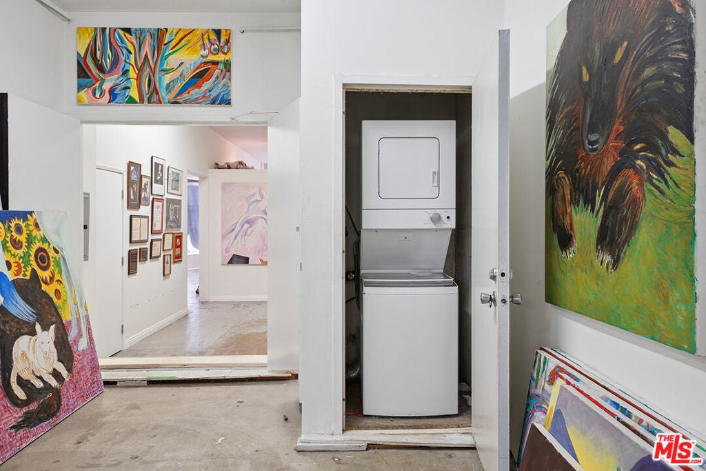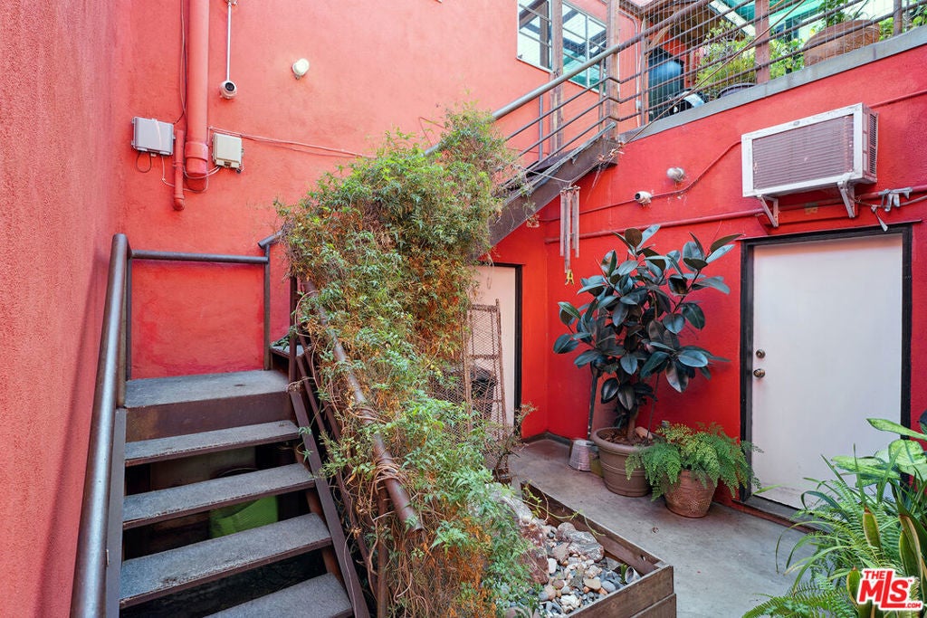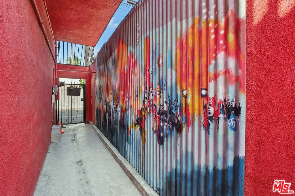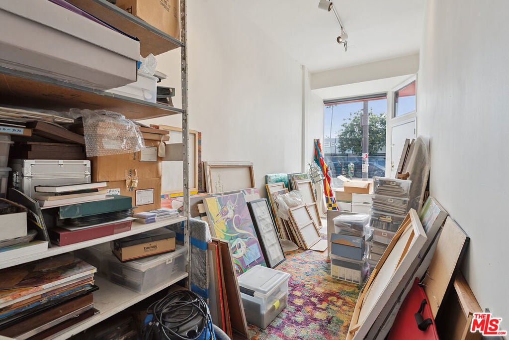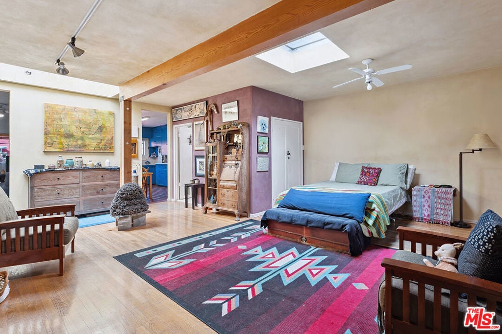 Welcome to 2847 Robertson, a truly unique opportunity to own a piece of Los Angeles history. This storied address was once the working studio and home of the legendary Rachel Rosenthal, one of the most influential interdisciplinary artists, performers, and teachers of the 20th century. The front half of the property is smartly partitioned into two distinct rooms, making it well-suited for two separate businesses or creative ventures. Behind this, there is a performance studio with 220-amp power and dramatic double-height ceilings. This studio space can easily function as a garage, accommodating up to four vehicles. Upstairs, there is a spacious studio apartment, a large patio, and an additional studio space. The studio apartment upstairs features a full kitchen, living room, and bathroom with incredible tree-top views. The additional studio offers exceptional natural light and could potentially be transformed into an additional residential unit. Recent improvements include brand new lighting and windows throughout, new roofs and a deck (2025), and major system updates: upgraded electrical panels (2023 & 2024), and new HVAC. Rarely does a live-work residence combine such versatility and historic provenance.