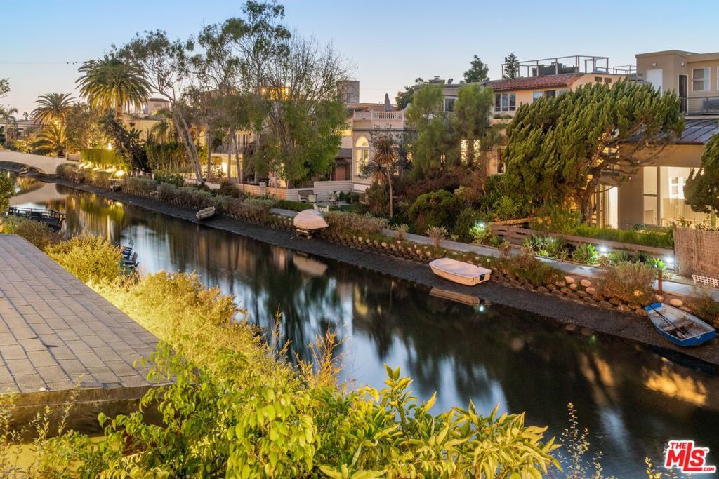 Enchanting Waterfront Paradise on the Venice Canals! Welcome to one of Los Angeles' most coveted neighborhoods, the Venice Canals. This rare storybook retreat offers 3 bedrooms, 2.5 bathrooms, a family room, den or 4th bedroom, and an extraordinary amount of outdoor living space including a fantastic rooftop. Inside, high ceilings set the tone from the moment you enter. The sun-drenched living room and family room both have French doors that open onto a large patio overlooking the canal, an ideal spot for entertaining and al fresco dining, complete with a picturesque swing. The kitchen and dining area are connected by a practical breakfast bar. The ground floor is complete with a powder room. Upstairs, three bedrooms feature lofted natural wood ceilings and a fourth room offers flex space for another bedroom, office, or den. The primary suite is the true star of the show, featuring a stunning fireplace, a private deck and a spiral staircase that leads to a bonus loft with a gym and library. Crowning it all, a rooftop deck with a sauna, offering a wellness sanctuary to recharge the body, mind, and spirit. Up here, enjoy unobstructed views of the canals, a perfect spot to watch the sun set. A rare waterfront house, where you can enjoy kayaking and paddleboarding from the private boat dock. Minutes from the beach and all the restaurants and shops on Abbot Kinney, this property offers the ultimate Venice lifestyle.