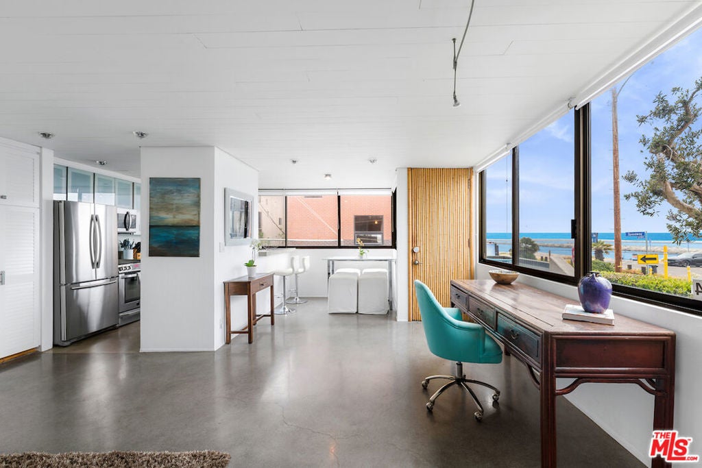 The epitome of coastal California living! This residence is a corner unit with tranquil views of the water. Open concept living space with cool concrete floors and abundant amount of natural light with sight-lines of the marina, ocean, and mountains. Private front patio to enjoy the ocean breeze and bask in the sun. Or if you prefer your feet in the sand, beach access is just moments away. Stainless steal appliances, walk-in closet and wash dryer in-unit. 2 tandem parking spaces in controlled access garage, plus guest parking spaces and access to a bike storage room. Great proximity to Marina del Rey, downtown Playa del Rey and Venice!