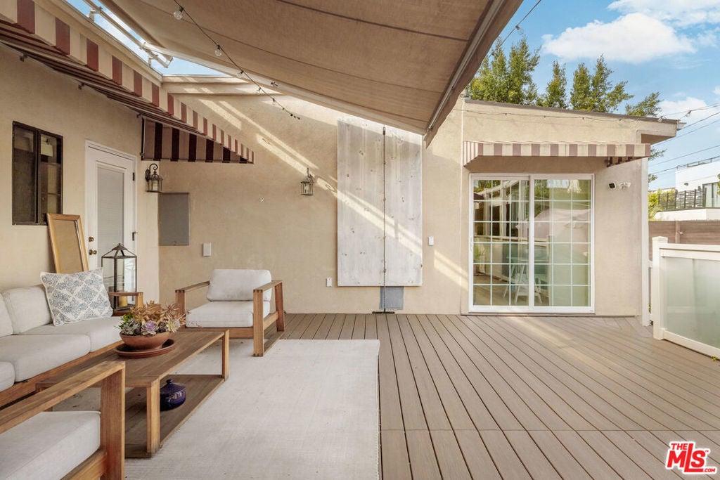 Location, Location, Location. This single-level residence features 4 bedrooms and 3.5 bathrooms across approximately 1,697 sqft, plus a detached ~280 sqft ADU with its own entrance: ideal for rental income, guests, or a private office. The main living spaces are open and inviting, with a well-designed kitchen flowing into the dining and living areas, anchored by a fireplace and large windows that bring in natural light. The layout is both functional and comfortable, with one bedroom positioned off the main living area, which could be used as a bedroom, formal dining room or office; and three additional bedrooms set privately down the hall. Two bedrooms include en suite baths, while the primary suite offers a walk-in closet, a spacious bathroom, and direct access to an enclosed bonus space: perfect for a home office or gym. Just beyond, a beautifully updated deck creates a peaceful outdoor setting with ample shade, ideal for relaxing or entertaining. The backyard connects seamlessly to the detached ADU and a gated rear parking area. Surrounded by mature hedging, the property feels quiet and secluded, with a front yard that functions as an additional outdoor space: perfect for dining, lounging, or play. Moments from Beverly Hills' top dining, shopping, and places of worship, this home combines location, privacy, and flexibility in one of the city's most desirable neighborhoods.