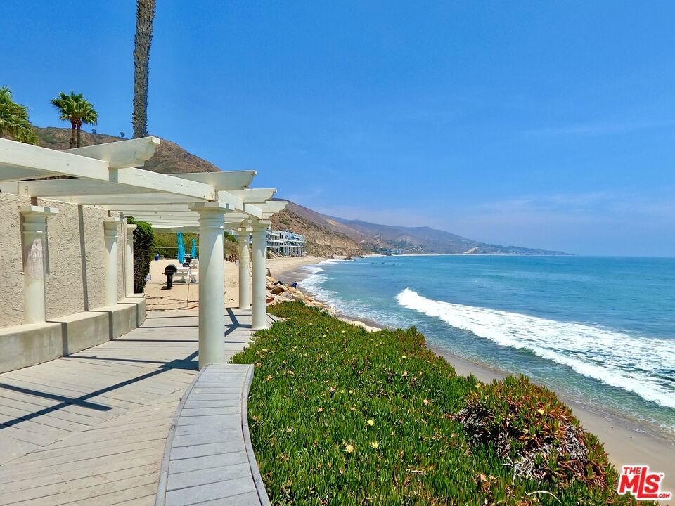 Newly remodeled beachfront ocean view condo in a prime Malibu location, close to Pepperdine, the Country Mart and Malibu's best dining. True resort living in this three-story end unit with no neighbors above or below. Featuring soaring ceilings in the living room, hardwood floors, Carrera marble, custom cabinets, stainless steel appliances and 2 fireplaces. Huge closets. Stunning white water ocean views from every room. Pool, spa, tennis courts, gym, sauna, volleyball, BBQs on a sandy beach and gated community. 2 side by side garage parking plus storage. Great surf spot. Wake up to beautiful sunrises from your bedroom. Beach living at its best.