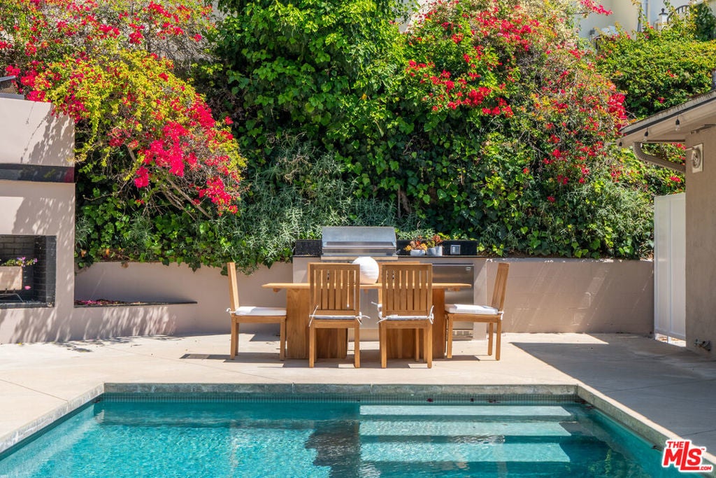 Welcome to "The Dalegrove MCM", a serene mid century modern oasis with pool, privately set in the coveted hills of Beverly Hills Post Office (BHPO). Situated at the end of a quiet cul de sac just off Coldwater Canyon, this single level residence offers a rare blend of privacy, tranquility, and central accessibility to Beverly Hills, West Hollywood, and Ventura Boulevard. Upon entry, you are welcomed by a light filled open floor plan where expansive walls of glass frame lush greenery and create a seamless indoor outdoor living experience. Clean architectural lines and warm finishes define the home, with a refined living and dining area flowing into a Poggenpohl designed kitchen equipped with premium appliances including a Sub Zero refrigerator. Stroll into your private retreat back yard featuring a heated pool and spa, sun drenched lounge areas, and mature landscaping. A built in outdoor kitchen with barbecue and refrigerator creates an ideal setting for entertaining or quiet relaxation. Positioned just far enough from Coldwater Canyon to avoid traffic noise, yet minutes from world class dining, shopping, and lifestyle amenities. Truly a rare opportunity to own a private design driven retreat in one of Los Angeles' most desirable hillside enclaves.