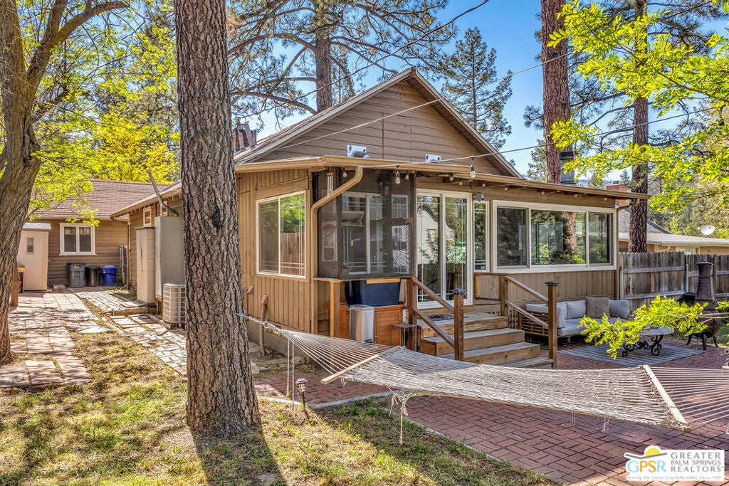 Charming 1953, 2 bed, 1 bath mountain cabin featuring a spacious living room with brick fireplace, bright bedrooms with custom shelving, and an updated kitchen with granite counters and stainless appliances.Enjoy a window-lined sunroom spanning the width of the home perfect for a home office, guest space, or additional living/dining area plus high-speed fiber internet for easy remote work. Laminate wood-style flooring, dual-pane windows, HVAC, and new fencing. Ideally located just minutes from Lake Hemet, 15 minutes to Idyllwild, and under an hour to Temecula and Palm Desert.