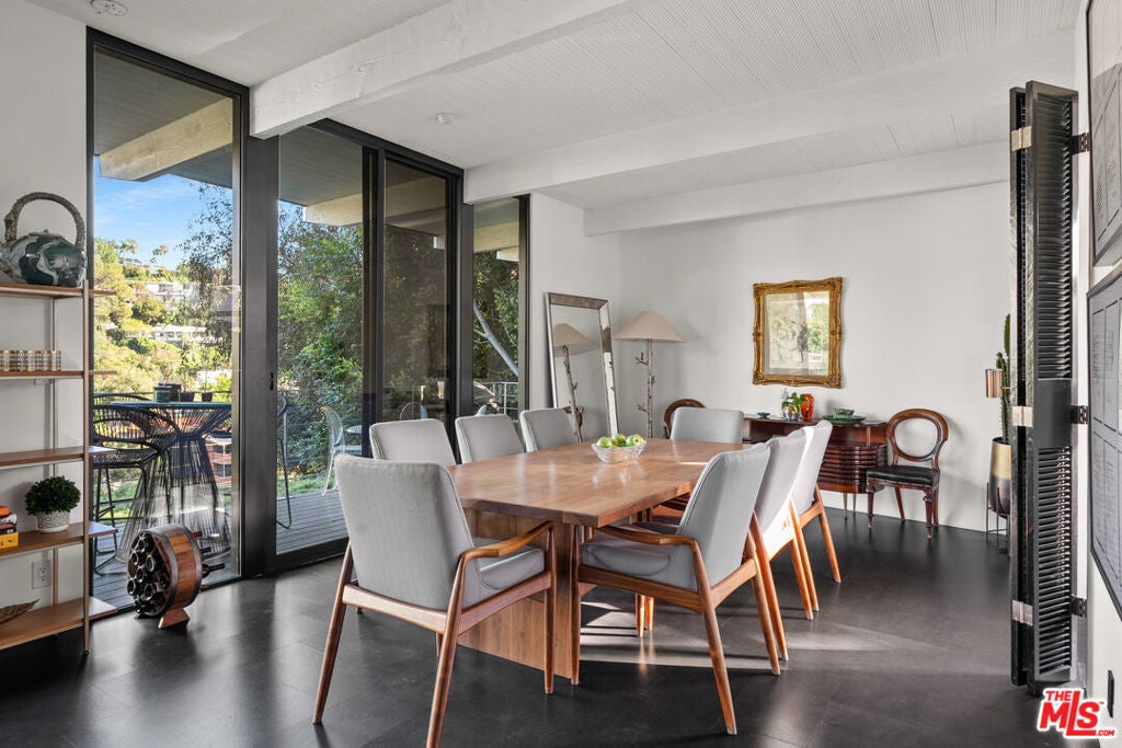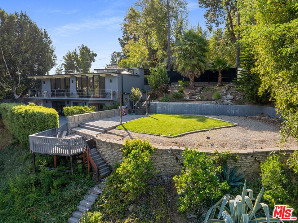 Tucked away in the serene Hollywood Dell, this secluded canyon-view residence was masterfully designed by renowned mid-century architect Ed Fickett. The home showcases signature post-and-beam architecture, dramatic walls of glass, and carefully preserved vintage details that blend effortlessly with modern comforts. Once the Los Angeles retreat of legendary actress Ava Gardner during her years with Frank Sinatra, the property carries a rich sense of Hollywood history. Outside, a generous grassy play yard with a charming treehouse offers space to relax and enjoy the surrounding nature. The offering also includes a rare double lot (2769 Rinconia Dr, APN# 5585-014-016), enhancing both privacy and potential.