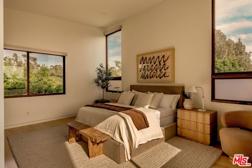 Discover unparalleled luxury living at 'The Winge House,' a thoughtfully designed modern home by renowned architect Tom Marble that embodies elevated Southern California living. Set on a 7,238 SF lot, this 5-bedroom, 4.5-bathroom residence offers 3,660 SF of thoughtfully designed living space across three levels. Modern and light-filled, the home is defined by expansive windows, soaring 12-foot ceilings, and seamless indoor-outdoor flow, all grounded by solid white oak engineered hardwood floors throughout. Every space is filled with natural light, creating a bright, airy atmosphere that carries throughout the home. The layout unfolds with intention from the moment you enter, where large windows draw your eye through to a private patio, setting the tone for the home's indoor-outdoor connection. An adjacent office with a full bath sits just off the entry, offering a functional yet connected workspace that can easily serve as an additional bedroom. The lower level features two additional bedrooms, both with direct access to the backyard, along with a laundry room, opening to a landscaped outdoor setting that extends the living space for effortless entertaining and everyday enjoyment. The second level is where the main living spaces come together. The chef's kitchen and dining area are seamlessly connected, flowing into the family room, with a double-sided fireplace subtly defining each space. The kitchen is centered around a large island and equipped with a Sub-Zero refrigerator and Wolf range, combining top-tier performance with refined design. Thoughtfully designed for everyday ease, a convenient dumbwaiter connects the garage directly to the kitchen, simplifying grocery transport. The primary suite anchors this level with a spacious bathroom featuring a soaking tub and walk-in closet, and opens directly to an outdoor patio with ocean views, alongside an additional well-positioned bedroom. The top level is dedicated to a private outdoor retreat, ideal for entertaining or relaxing above it all while enjoying sweeping ocean views. A two-car garage with a Tesla charger completes the home. Located in the heart of Mar Vista, this home offers a quiet residential setting with convenient access to Venice, Santa Monica, and Abbot Kinney, and is just moments from the highly anticipated new neighborhood park.