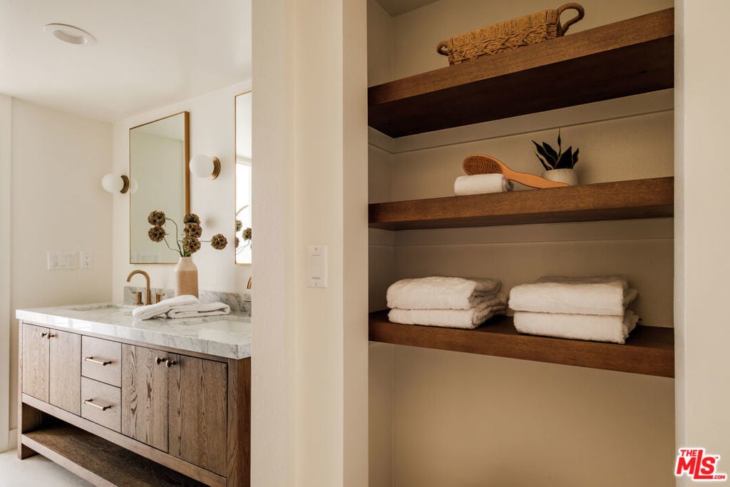 Ideally located just a half block South of Montana Ave., this beautifully remodeled Santa Monica townhome offers a sophisticated blend of modern upgrades and comfortable living. Thoughtfully and comprehensively renovated, the residence features three bedrooms and two and a half baths, with oak floors flowing throughout the home. The open-concept floor plan centers around a chef's kitchen and spacious great room, designed for both everyday living and effortless entertaining. The kitchen is appointed with a full suite of Thor appliances, wine cooler, generous counter space, beautiful cabinetry and a seamless connection to the living and dining areas. A separate office nook provides a dedicated workspace ideal for working from home. Two private patios extend the living spaces to the outdoors, creating peaceful areas for entertaining or relaxing. Upstairs, there are three bedrooms, each with generous closet space offering flexibility for family, guests, or additional workspace. Newly renovated bathrooms include a spacious primary bath with a marble dual vanity and a walk-in shower with dual shower heads. Additional amenities include a private 2-car direct-access garage and ample storage closets. Situated in the Franklin school district within one of Santa Monica's most sought-after neighborhoods, just steps from Montana Ave. shops and dining, and a short stroll to Palisades Park and the beach, this turn-key townhome combines thoughtful design, quality upgrades, and an exceptional location.