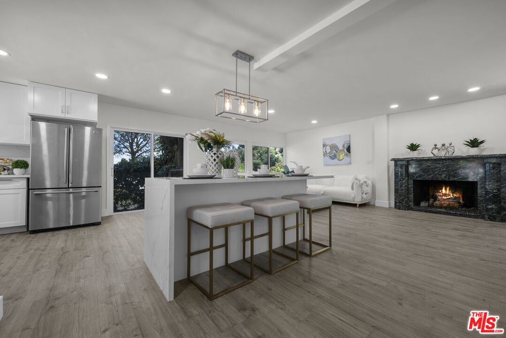 Views! Views! Views! Perched above it all on a quiet cul-de-sac, 3453 Green Vista Dr is a single-level contemporary retreat that captures sweeping mountain and valley views from nearly every angle. This is a rare opportunity to own a home that truly feels like a private escape yet remains moments from the best of the Westside. Designed for both effortless living and elevated entertaining, the home welcomes you with expansive open-concept spaces filled with natural light. The chef's kitchen is a true centerpiece, featuring a stunning Calcutta white waterfall island, custom cabinetry, and sleek stainless steel appliances perfectly blending style and function. The home features three generously sized bedrooms, highlighted by a luxurious primary suite complete with walk-in closets and a spa-inspired bath with a soaking tub, dual vanities, and a glass-enclosed shower. A dedicated home office provides the ideal space for remote work or creative pursuits.Step outside and experience your own private resort. Lush landscaping, cascading hillside waterfalls, and a stunning entertainer's patio set the stage for unforgettable gatherings complete with a built-in BBQ kitchen, bar, and panoramic views that make every sunset feel like a moment.Located within the sought-after Lanai Road Elementary district and close to top-rated schools, including Gaspar De Portola Middle School and High Tech LA, this home offers both lifestyle and location in one exceptional package. This is more than a home, it's a daily escape.