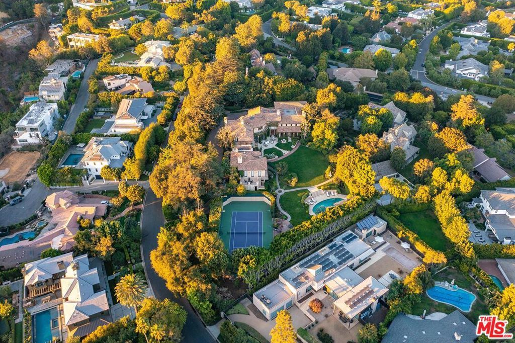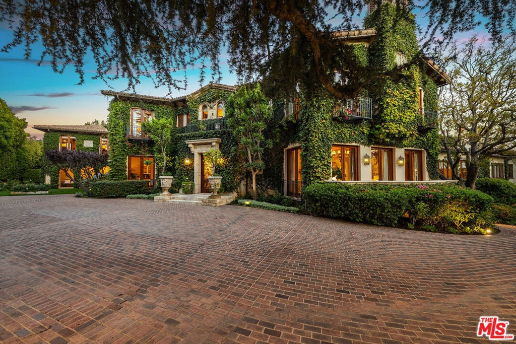 The Leonard Estate stands as the most important legacy property on the Westside - an extraordinary Italian villa of rare scale and pedigree, available once in a generation. Envisioned by world-renowned architect Richard Landry, this Florentine-inspired masterpiece was crafted with only the finest materials and exudes timeless elegance. Perched on nearly two acres of expansive, park-like grounds within the prestigious Palisades Riviera, the estate is hidden behind double gates, towering hedges, and a long private driveway, ensuring complete privacy and security. The ivy-clad facade opens to a grand motor court and sets the stage for over 16,700 square feet of exquisitely designed interiors. Vaulted ceilings, generous proportions, and seamless indoor-outdoor flow create a setting that is equally suited for intimate living or entertaining on a grand scale. The main residence features a dramatic two-story family room, a refined formal living room and dining room, a solarium, a gourmet kitchen with professional appliances and center island, and multiple wings devoted to leisure and entertaining, including a screening room, media room, and gym. There are seven bedrooms in total, with the primary suite serving as a private retreat offering a fireplace, spa-like bath, dressing rooms, and a terrace overlooking breathtaking ocean, canyon, and mountain views. The grounds are a world unto themselves: a sun-drenched oval pool and spa, lit tennis court with viewing pavilion, rolling lawns, meadow, putting green, and lush gardens framed by mature trees. A full two-story guesthouse adjacent to the pool includes a kitchen and guest accommodations, ideal for hosting visitors or poolside gatherings. The Leonard Estate is a true world-class residence that combines European romance with modern luxury, offering both sumptuous and serene living on one of the Riviera's most coveted streets.