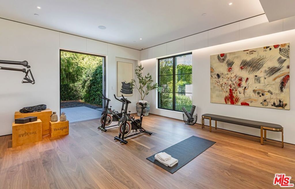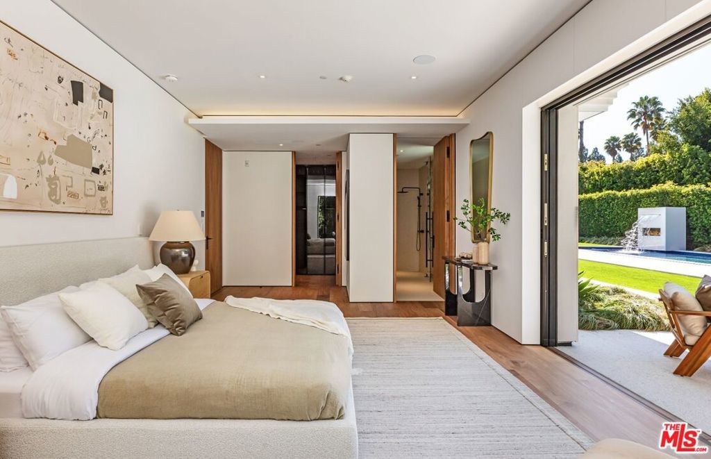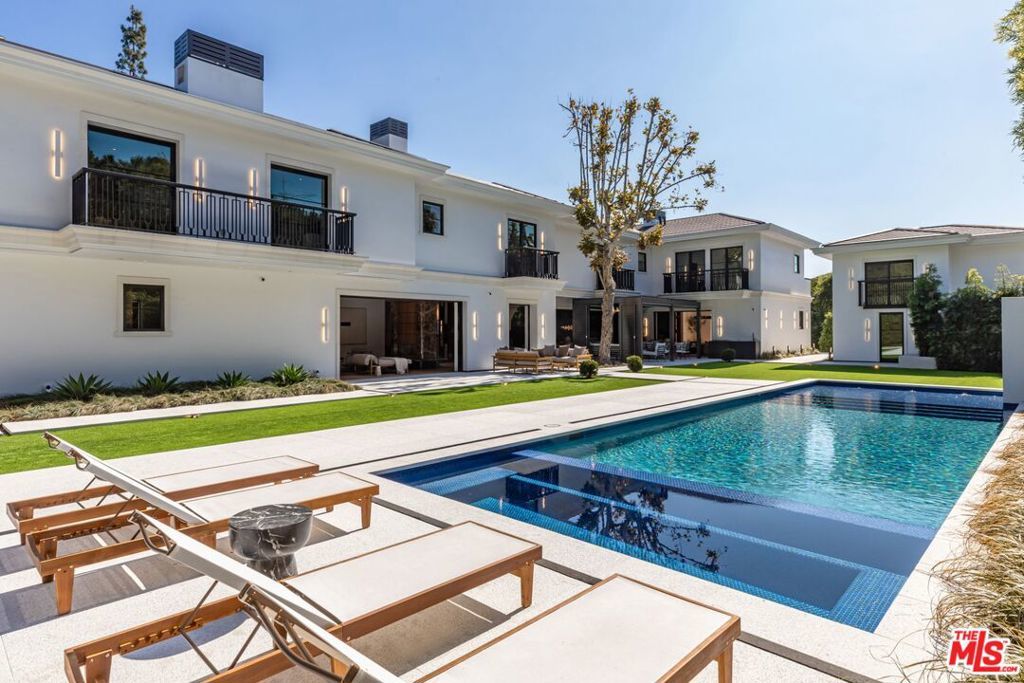 Nestled in one of Beverly Hills' most prestigious enclaves, on just over half an acre, this breathtaking modern estate seamlessly blends timeless elegance with contemporary luxury. The striking white facade, framed by lush greenery and mature trees, sets the stage for an exceptional living experience. Designed by Tim Campbell for both grand entertaining and intimate gatherings, the 13,000 SF home boasts a thoughtfully curated open-concept layout with seamless indoor-outdoor flow. With 9 ensuite bedrooms and 10 bathrooms, this estate offers an unparalleled level of comfort and sophistication. The primary suite is a true retreat, featuring dual bathrooms and dual walk-in closets, creating a private sanctuary of luxury. A detached guest house with a private bedroom provides additional space for visitors or extended stays. Outside to discover a resort-style backyard, complete with a pool, cascading waterfall, and spa. A poolside cabana and expansive patio space invite effortless al fresco dining and lounging, while the large, flat lawn provides ample space for recreation and relaxation. Every detail of this residence has been meticulously designed to offer the finest in modern living, making it the perfect home for those who appreciate style, comfort, and world-class amenities.