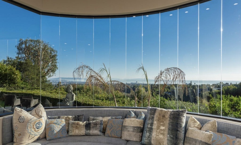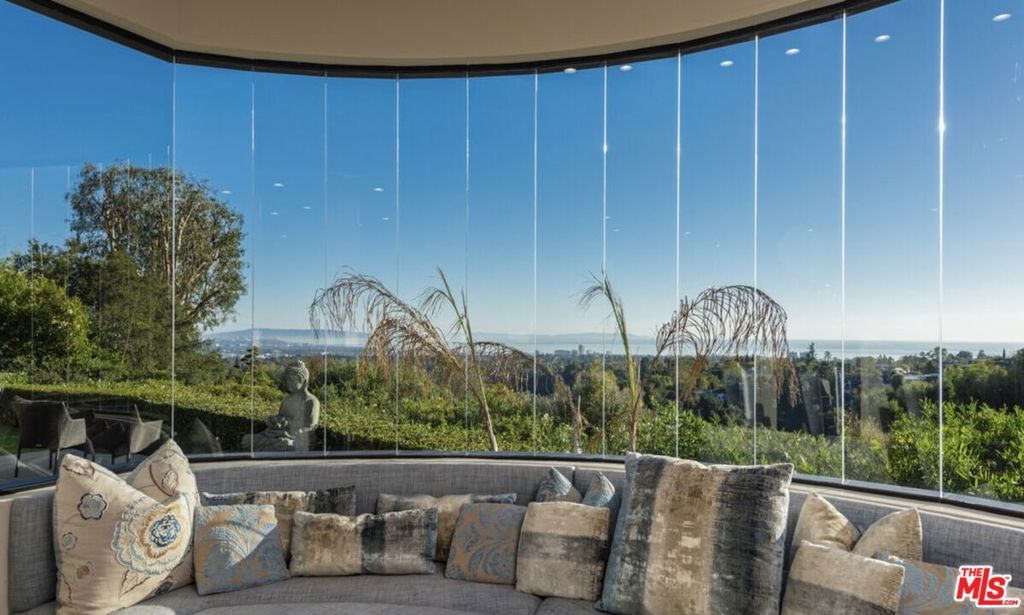 Nestled on a rare corner lot in one of Brentwood's most private canyon enclaves, 1799 Correa Way offers a true estate compound with unobstructed panoramic views stretching from the Pacific Ocean and Catalina Island to the Downtown Los Angeles skyline. Set behind gates with no immediate neighbors, the property delivers exceptional privacy and scale, anchored by a dramatic main residence defined by floor-to-ceiling glass walls that fully capture the surrounding canyon and city vistas. Indoor-outdoor flow is seamless, with expansive sliding doors opening to multiple terraces designed to maximize light, views, and entertaining. The main home features a functional layout with a gourmet kitchen, oversized island, and breakfast area, along with a main-level bedroom and three additional bedrooms upstairs. The primary suite is positioned to take full advantage of the views, complete with a private wraparound balcony, fireplace, and spa-style bath with soaking tub and steam shower. A key differentiator is the approximately 3,200+ square foot detached studio/workspace with guest accommodations (a 4 bedroom Guest house), creating a rare multi-structure compound ideal for creative use, extended living, or high-end guest quarter San asset not commonly found in this pocket of Brentwood. The grounds are designed for resort-style living, featuring a black-bottom pool, spa, water features, outdoor kitchen, fire pit, and multiple entertaining areas, all set within lush, secluded landscaping. Located minutes from Brentwood's top dining, retail, and schools, this property combines privacy, view, and compound flexibility offering a unique opportunity to reposition or customize a premier canyon estate.