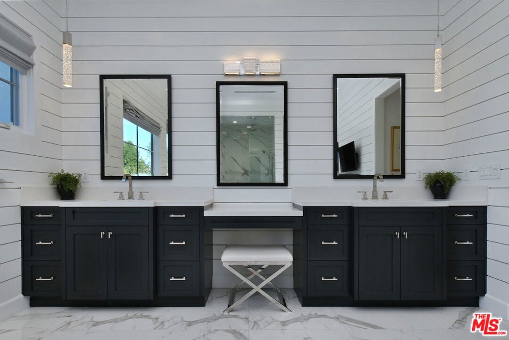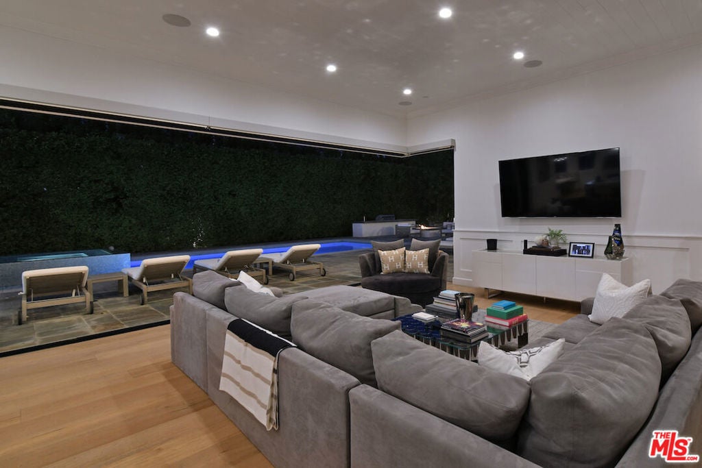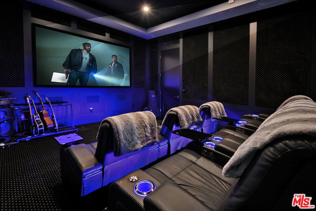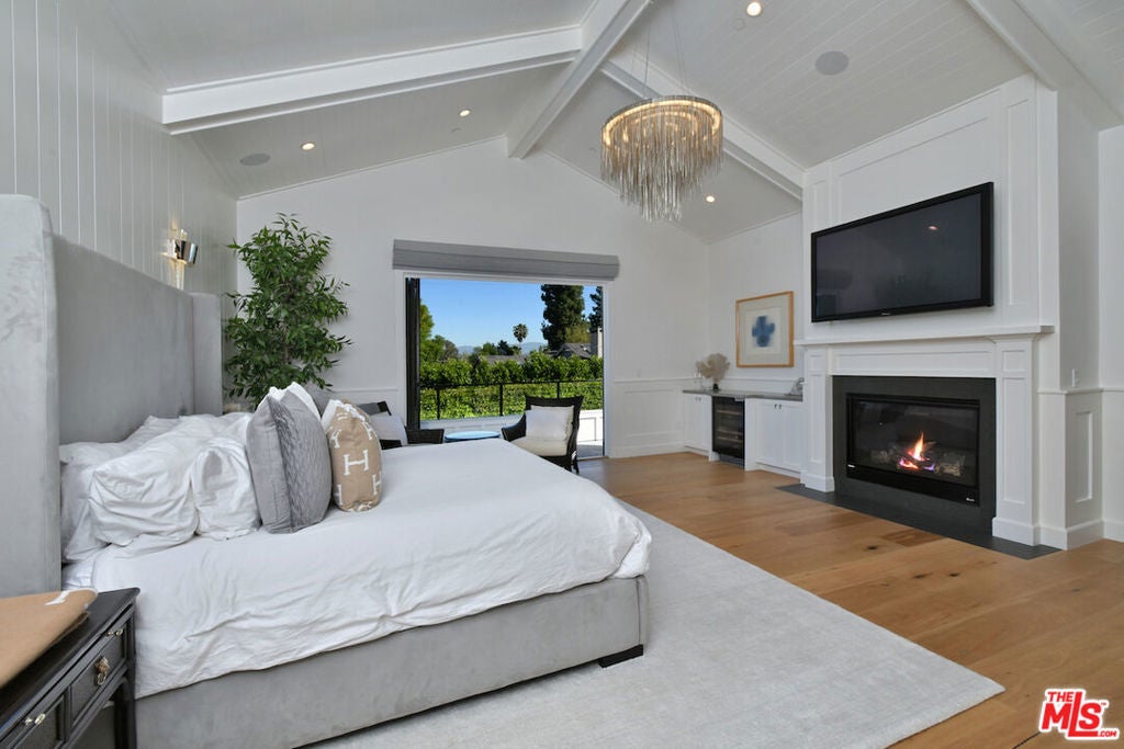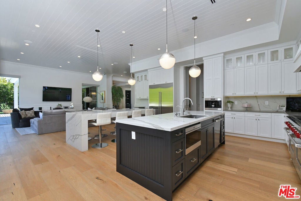 Experience refined modern farmhouse living in the highly coveted Amestoy Estates. Situated on an expansive 18,000+ sq ft corner lot at the end of a prime cul-de-sac, this gated estate showcases exceptional curb appeal and thoughtful design throughout.A bright, open-concept floor plan is enhanced by oversized windows that flood the home with natural light, while custom built-ins add sophistication to the formal living and dining spaces. A striking wine room is perfectly positioned for both function and display.The gourmet kitchen is designed for both everyday living and entertaining, featuring top-of-the-line Wolf appliances, dual oversized quartz islands, a butler's pantry, and abundant storage.Seamless indoor-outdoor flow is achieved through floor-to-ceiling pocket sliding doors, opening to a true entertainer's backyard complete with a Pennsylvania bluestone patio, resort-style pool, zero-edge spa, outdoor living room with a double-sided fireplace, pavilion, sports court, BBQ area, fire pit, and a generous grassy lawn. The luxurious primary suite offers vaulted beamed ceilings, a fireplace, and a wraparound balcony with tranquil treetop views. Upstairs includes three additional spacious bedrooms, a built-in workstation, and a dedicated laundry room. Downstairs features a guest bedroom, private office, and a plush home theater with a state-of-the-art sound system. Additional highlights include a Control4 smart home system and a gated motor court with ample parking. Ideally located near Encino's premier shopping, dining, and lifestyle amenities, this home offers the perfect blend of luxury and convenience.