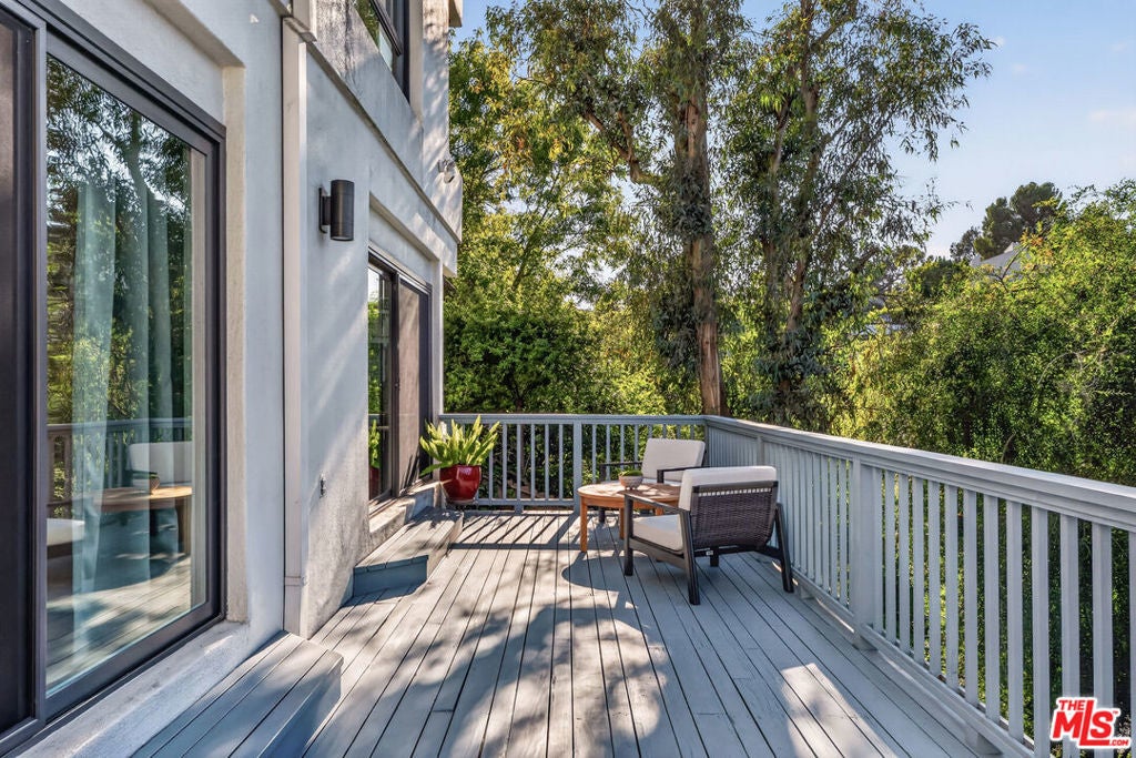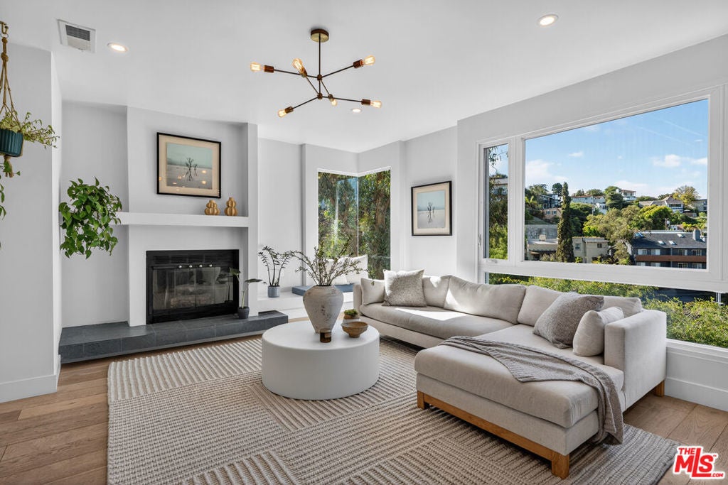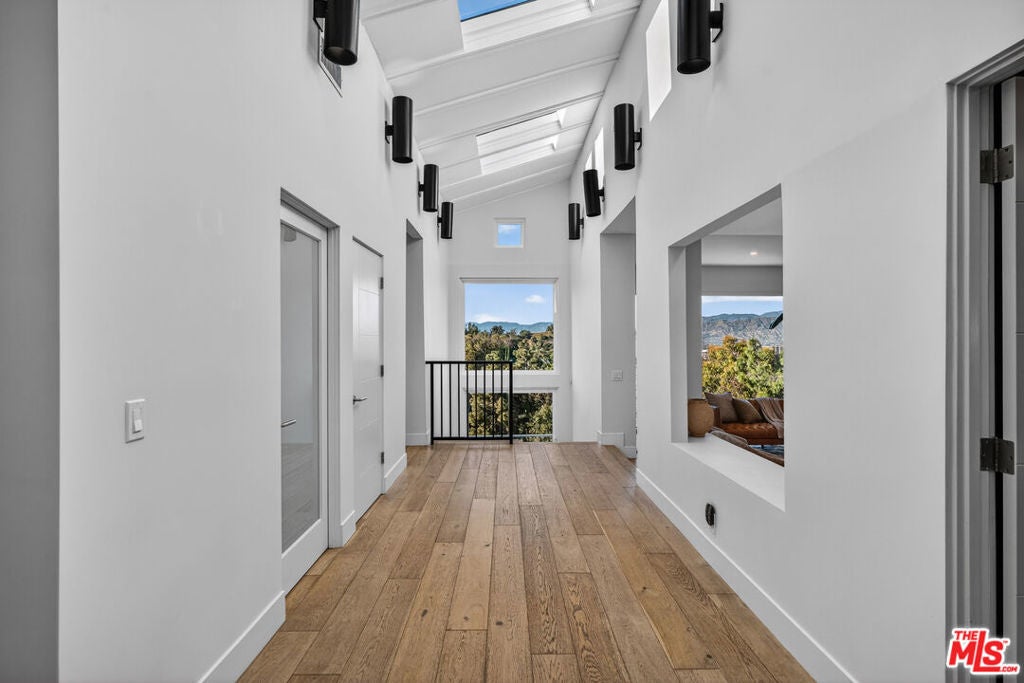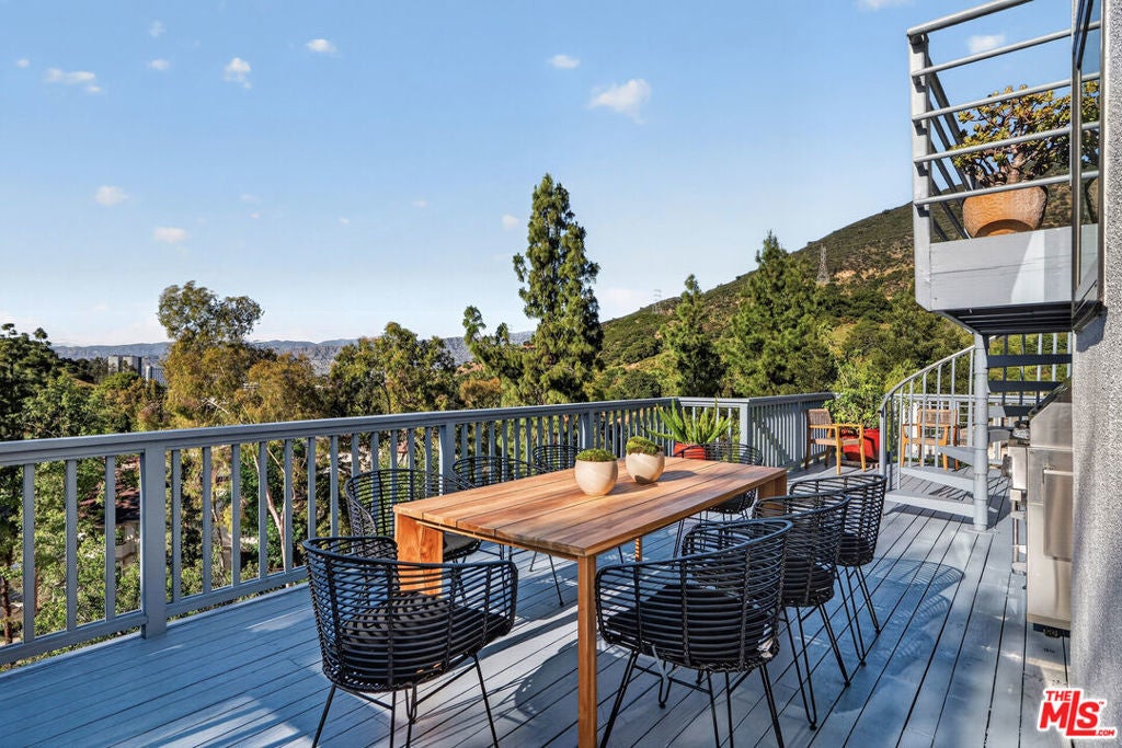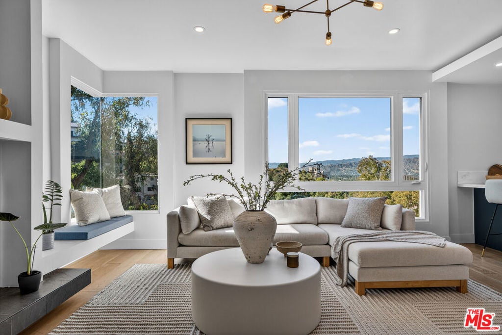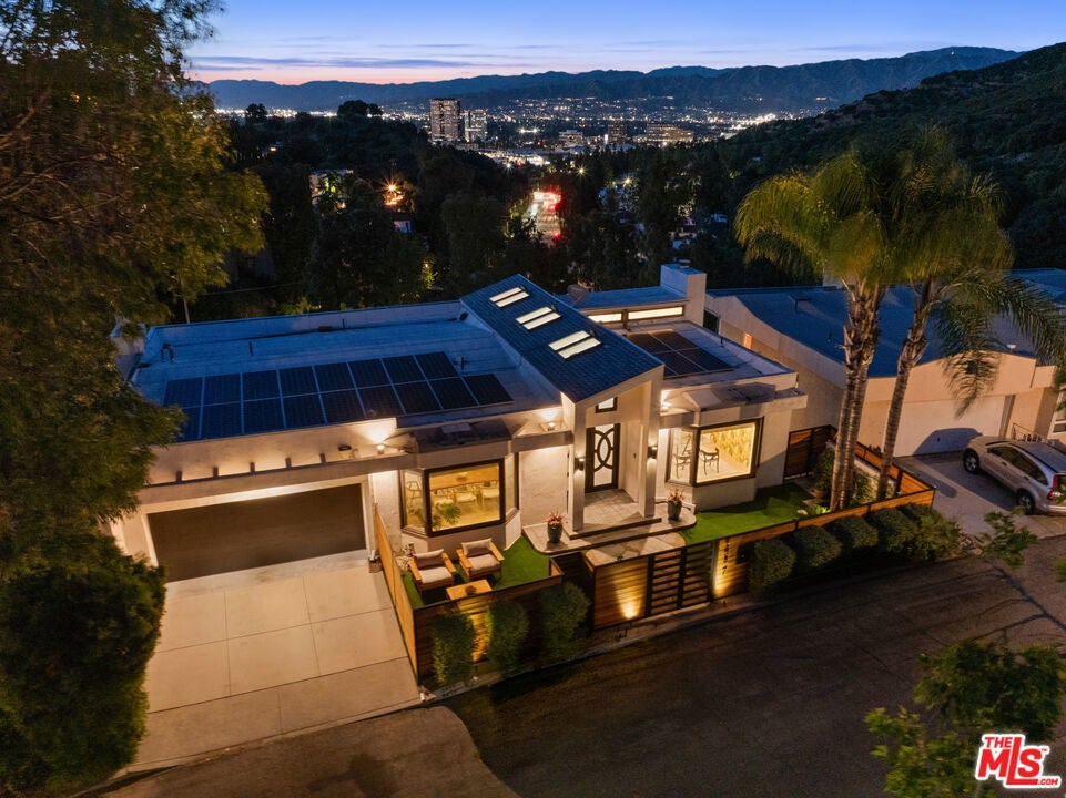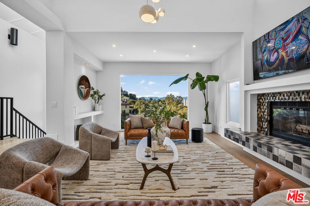 Welcome to "The Primera Observatory," a design-driven contemporary retreat perched in the highly sought-after enclave of Hollywood Hills East. Discreetly positioned on a private cul de sac, offering rare seclusion along a quiet hillside setting and close to hiking trails, this beautifully upgraded residence captures sweeping canyon, mountain, and city views, offering a rare blend of tranquility and wellness-focused living. Upon entry, soaring ceilings and abundant natural light pour through multiple skylights, creating an uplifting atmosphere throughout. The open-concept layout is ideal for both everyday living and entertaining, featuring a spacious great room that flows seamlessly into a sleek, updated kitchen with chef-grade appliances, ample storage, and a walk-in pantry. The primary suite serves as a private sanctuary, complete with a fireplace, spa-inspired en-suite bath with soaking tub and dual vanities, and two generous walk-in closets, all complemented by serene hillside views. A dedicated meditation and yoga room offers a peaceful wellness retreat and can also be transformed into a podcast studio, recording studio, gym, home office, or other creative use. An expansive deck spans the rear of the home, offering an ideal setting for outdoor relaxation or entertaining against a backdrop of stunning vistas, with ample space for a cold plunge, outdoor sauna, and outdoor shower. Extensively upgraded with solar, smart home systems, water filtration, and major system improvements, the home reflects true pride of ownership. Located just moments from the Hollywood Reservoir, Griffith Observatory, and some of the area's most scenic hiking trails, with easy access to studios, dining, and shopping. Truly a rare opportunity to own a thoughtfully curated retreat in one of the Hills' most desirable settings.