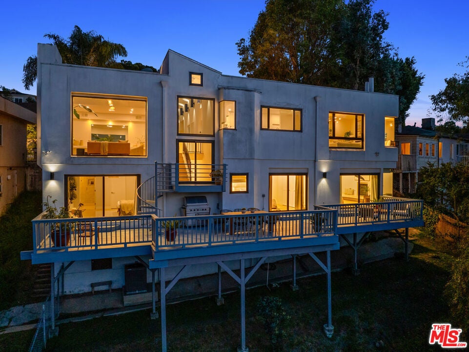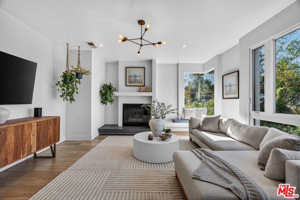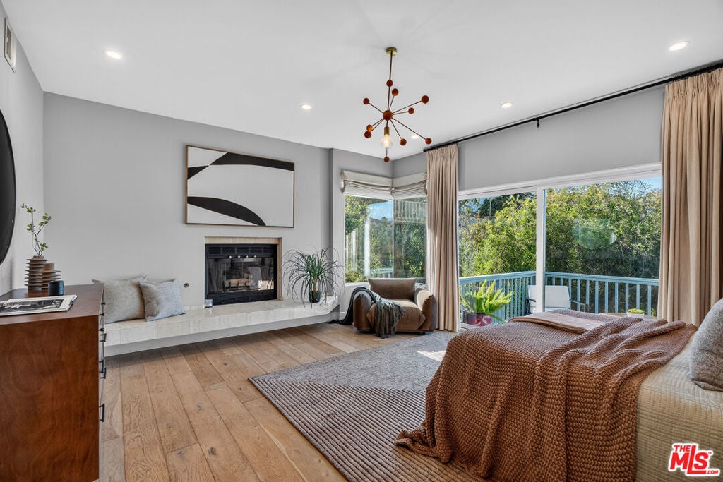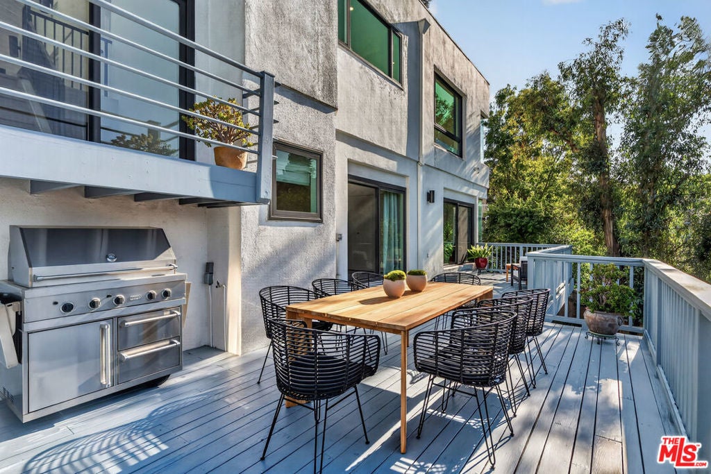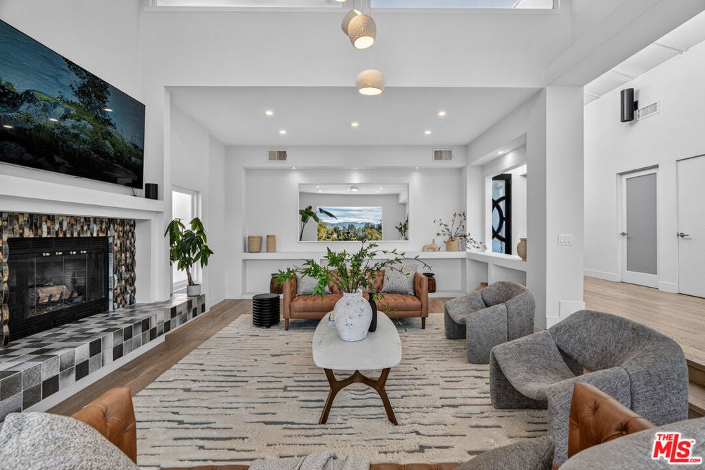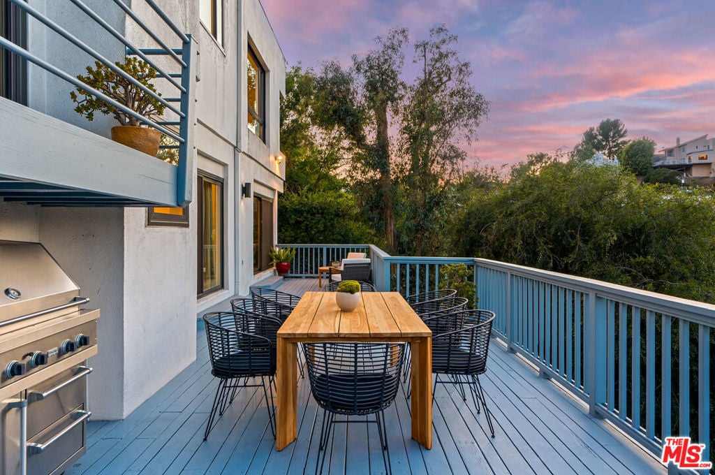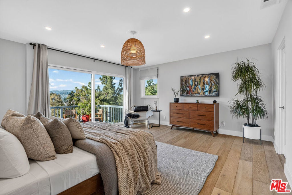 Welcome to "The Primera Observatory," a design-driven contemporary retreat perched in the highly sought-after enclave of Hollywood Hills East. Discreetly positioned on a private cul de sac, offering rare seclusion along a quiet hillside setting and close to hiking trails, this beautifully upgraded residence captures sweeping canyon, mountain, and city views, offering a rare blend of tranquility and wellness-focused living. Upon entry, soaring ceilings and abundant natural light pour through multiple skylights, creating an uplifting atmosphere throughout. The open-concept layout is ideal for both everyday living and entertaining, featuring a spacious great room that flows seamlessly into a sleek, updated kitchen with chef-grade appliances, ample storage, and a walk-in pantry. The primary suite serves as a private sanctuary, complete with a fireplace, spa-inspired en-suite bath with soaking tub and dual vanities, and two generous walk-in closets, all complemented by serene hillside views. A dedicated meditation and yoga room offers a peaceful wellness retreat and can also be transformed into a podcast studio, recording studio, gym, home office, or other creative use. An expansive deck spans the rear of the home, offering an ideal setting for outdoor relaxation or entertaining against a backdrop of stunning vistas, with ample space for a cold plunge, outdoor sauna, and outdoor shower. Extensively upgraded with solar, smart home systems, water filtration, and major system improvements, the home reflects true pride of ownership. Located just moments from the Hollywood Reservoir, Griffith Observatory, and some of the area's most scenic hiking trails, with easy access to studios, dining, and shopping. Truly a rare opportunity to own a thoughtfully curated retreat in one of the Hills' most desirable settings.
