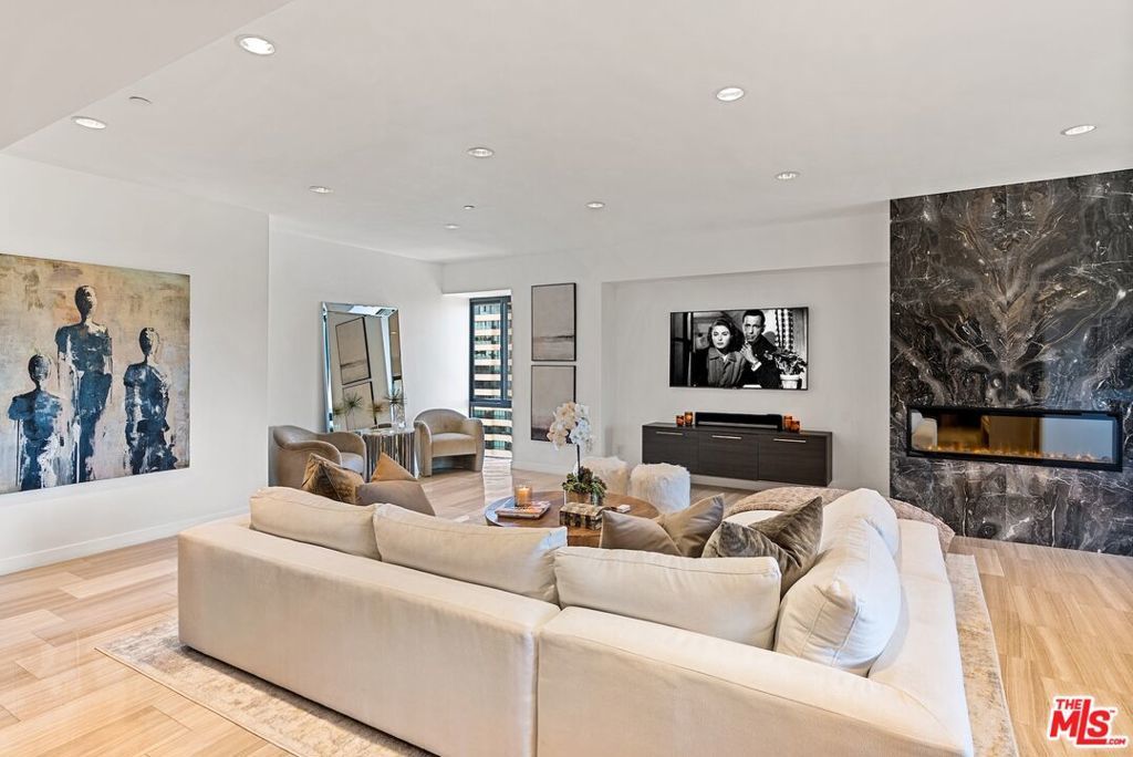 This is a flawless beauty. Complete with every detail imaginable . If you're looking for VIEWS and done on a high floor , One Of The Most prestigious addresses on the Wilshire Corridor "The Grand". This luxurious building also has one of the lowest HOA fees on the cooridor. Explosive Views and more Views , City Views, Ocean Views, Getty Views, Holmby Hills Views... North/ South, East / West/ Has it all .This amazing done unit is Cool Hip Modern/Spa/Zen vibe all in one. This unit features 2bd 2 bath, 1,945 Sq Ft , Rare Corner Unit , "19th Fl with very open floor-plan including custom kitchen cabinets, stainless Bosch range, dishwasher, micro with stainless Fisher & Paykel refrigerator, Custom marble countertops & backsplash, center island with breakfast bar, custom Champagne Bubbles triple pendant lighting, recessed lighting & under-counter lighting, separate bar area with wine fridge, two large oversized balconies, one facing the City & Ocean and the other Facing Holmby Hills & Mountains overlooking the Getty , Large living room with custom marble book match fireplace, limestone floors , custom made stainless a/c vents throughout . Wonderful dining right off of the rear balcony with Holmby Hills Views, custom stratosphere lighting, second bath with custom metallic tiled walls, custom sink, custom mirror , Wonderful steam shower with porcelain slabs, sitting bench & frameless shower, Custom Solid doors throughout , High Ceilings, Great 2nd bed with real walnut hardwood floors , Custom Italian Designed Closet Doors and more wonderful views. Large Primary suite with smoked Mirror wall, Remote Window treatments, Explosive unobstructed City Views, walnut hardwood floors, "TWO" nice size walk in closets , large balcony off primary , Spa style primary bath with dual custom sinks, oversized jacuzzi tub with body sprayer, with separate custom shower with large shower head and separate body sprayer. This is truly a one of a kind.. This is the absolute BEST corner location in the entire building... One floor below the top .. This rare unit is extremely unique because of the location as it is one of the very very few on Wilshire that does not have a building in front of you as the building across the street is only 11 stories. This is picture perfect.. If you have someone looking for an incredible Modern Unit completely updated, with all the goodies in the most prime location , there is only one choice.. This is a Full Service Building with 24 Hour Security , Concierge, Valet, Pool, Spa, Fitness Center, Conference Room, EV Chargers, and one of the lower HOA dues in the corridor . This unit also comes with 2 rare side by side end parking spots . Steps from Beverly Hills, Rodeo Drive, Dining, Shops, Theater, UCLA, Westwood Village and Century City Westfield Mall, Run , dont walk .