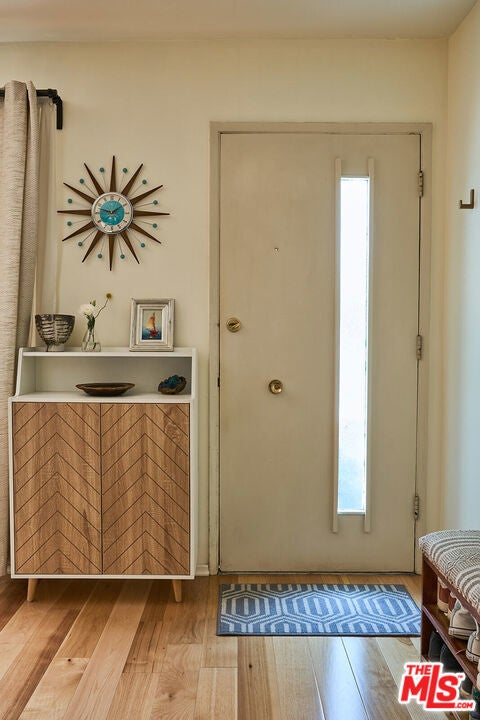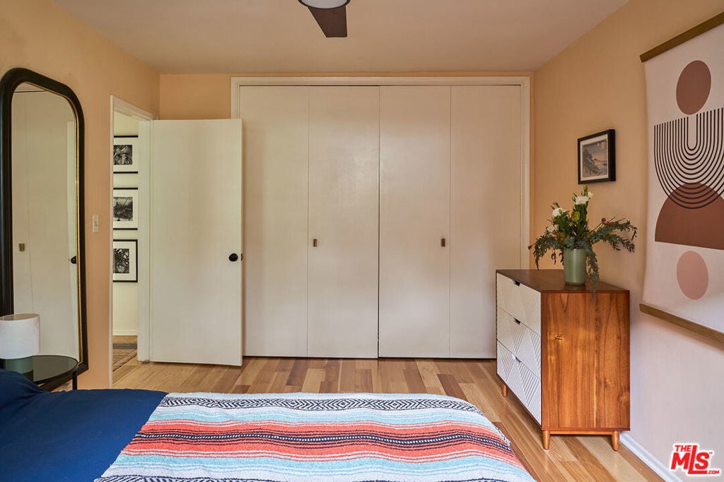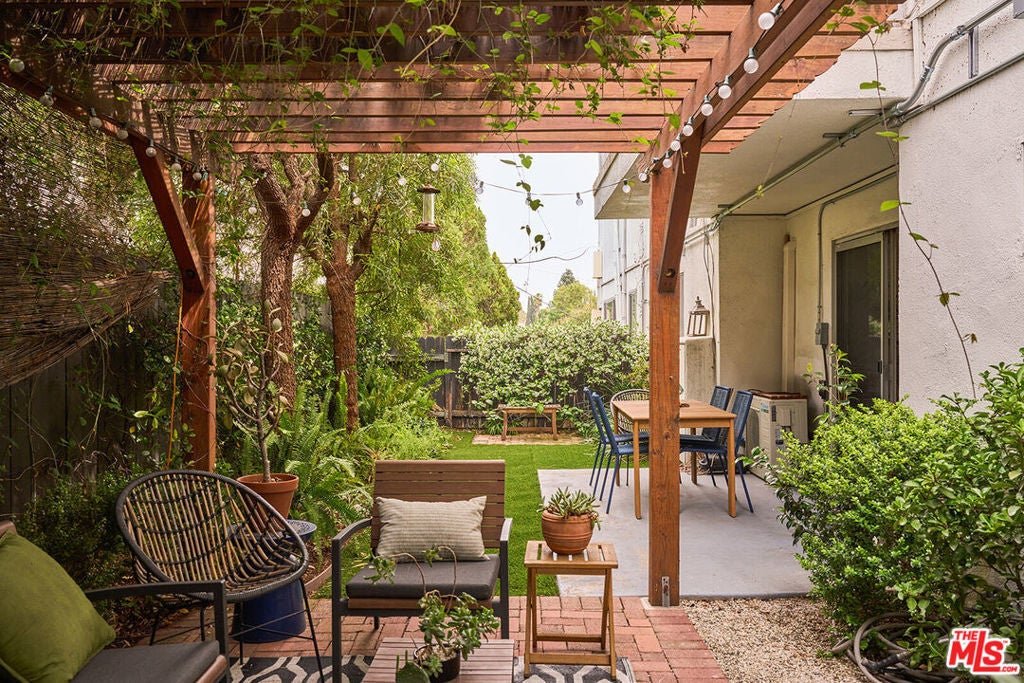 Mid-century condo with an expansive private backyard in your dream Los Feliz location, a quiet, mid-block street yet close to all the amenities of Los Feliz Village. You are greeted by a quintessential, sunny mid-century courtyard with bright color doors, retro vibes, and tropical foliage. A well-designed, intuitive layout maximizes the square footage. Updates complement the original 1963 design - from newly installed Hickory wood flooring and clean, simple Caesarstone quartz countertops to classic tile choices. Updated bathroom features a floating sink and dual shower. Bedrooms are spacious and feature split A/C units. The secondary bedroom is a great flex space: perfect as a bedroom with ample closets or as an office with great flow to the backyard. Stretching the length of the condo, the backyard is perfect for entertaining with lush landscaping and a pergola for dining al fresco under shade. It's the ideal spot for morning coffee or for your pup to run around. Rarely can you find such a spacious private outdoor space, more commonly found with single family homes, in a condo in a prime location. Leave your car at home and take a stroll through the neighborhood, hike the trails of Griffith Park at your backdoor, grab coffee at Maru Coffee, dinner at Little Dom's, grab Wine at Lou Wine Shop, a good book at Skylight Books OR just take it all home, be a homebody, and enjoy your private outdoor oasis!