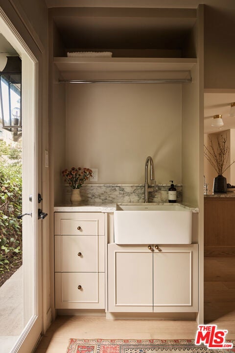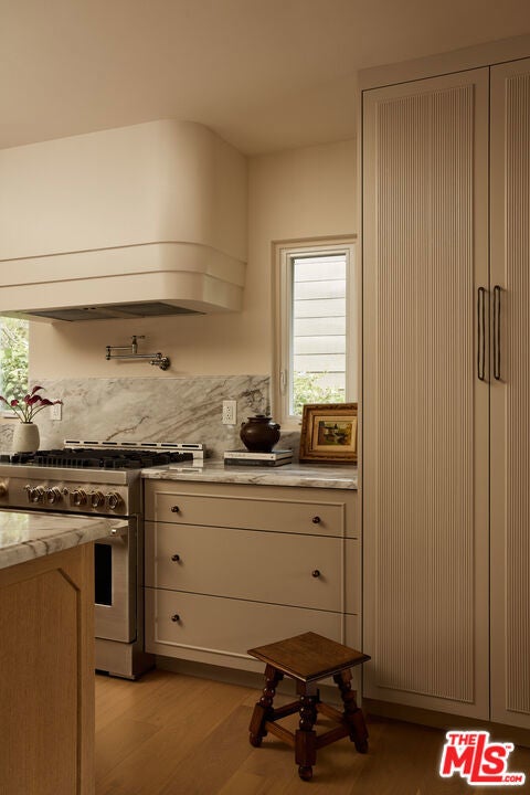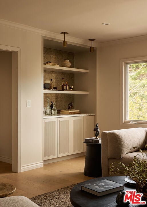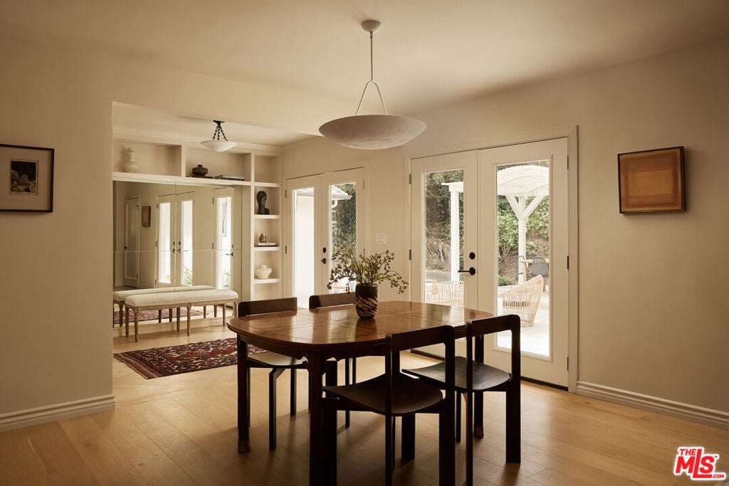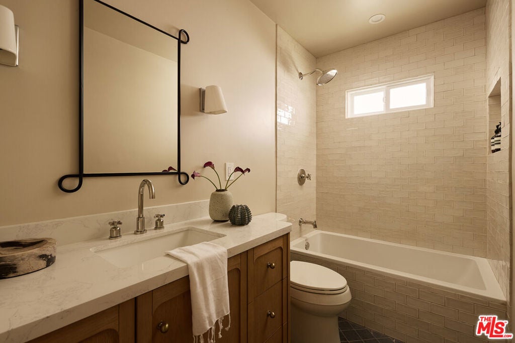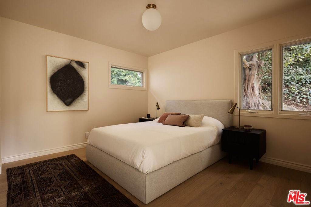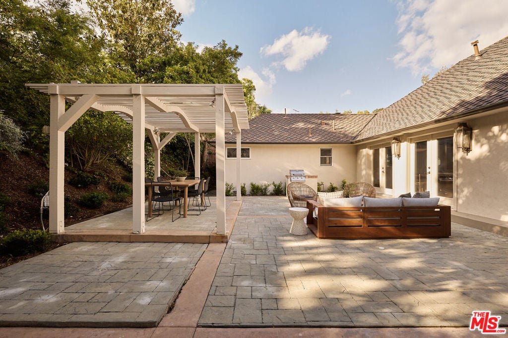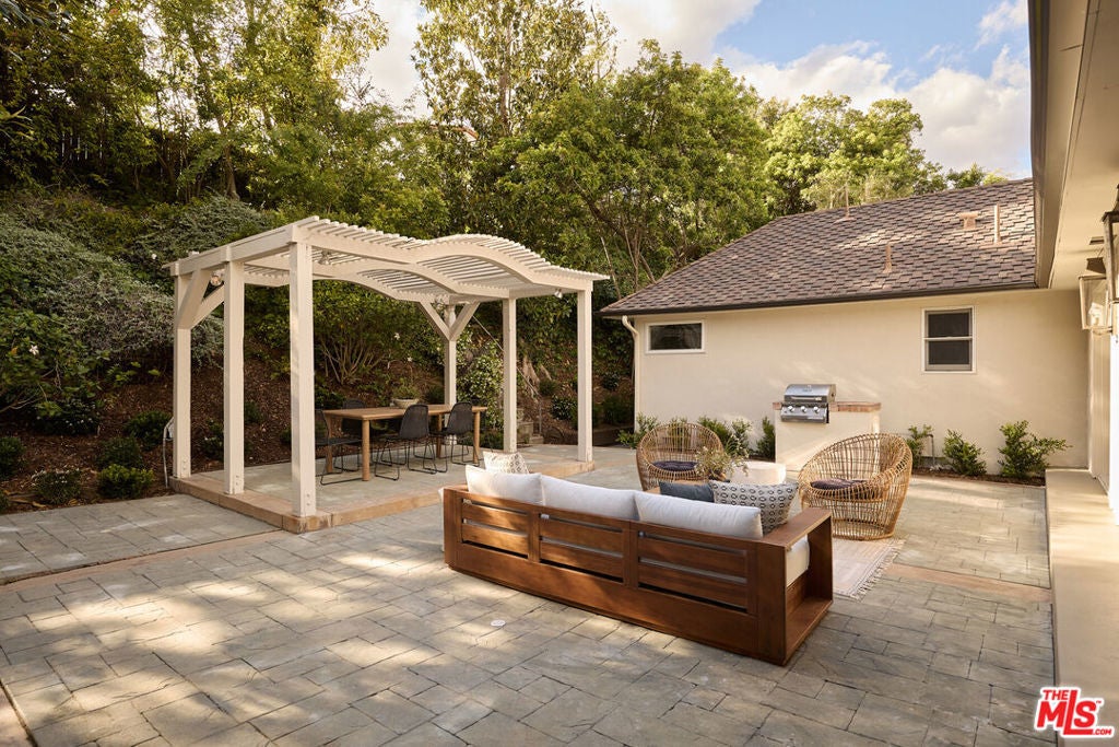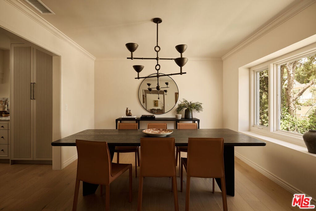 Nestled on a quiet and peaceful stretch of Bentley Avenue just north of Montana Avenue, this newly remodeled residence offers refined living in the highly sought-after Westwood Hills neighborhood, a beloved community known for its charm, convenience, and exceptional lifestyle. Fully reimagined and thoughtfully transformed, this move-in-ready 4-bedroom, 3.5-bathroom home has been remodeled from top to bottom with all-new systems, elevated finishes, and timeless materials throughout. Warm engineered white oak floors flow seamlessly across the interiors, complemented by custom cabinetry and bespoke millwork, sophisticated fixtures, and marble and quartzite countertops throughout. The heart of the home is a stunning chef's kitchen featuring paneled appliances, a striking white oak island, and luxurious marble countertops with a full-height backsplash, a space designed to be as functional as it is beautiful. Adjacent to the kitchen is a formal dining room, ideal for both intimate dinners and effortless entertaining. The expansive living room is lined with wall-to-wall windows and filled with soft, warm natural light. Complete with a built-in bar and a fireplace with a marble surround, the space creates a perfect ambiance for both relaxing evenings and hosting guests. The generously sized primary suite is bathed in warm natural light and features two walk-in closets. The primary bath is exquisitely curated with a soaking tub, elegant marble finishes, a tumbled limestone checkered floor, and a beautifully crafted white oak double vanity, creating a serene spa-like retreat. The outdoor spaces are equally inviting. The front yard, with a grassy area and new landscaping, feels like a cozy private park, elevated from the street to create a sense of privacy and tranquility. In the rear, a generous hardscaped entertaining area is enveloped by lush landscaping and anchored by a magnificent magnolia tree, giving the backyard a true feeling of sanctuary. Located within the coveted Warner Elementary School district, this home also offers convenience with close proximity to UCLA, dining, entertainment, and easy access to the 405. This is an opportunity to own a fully turnkey designer home in one of the Westside's most desirable neighborhoods.