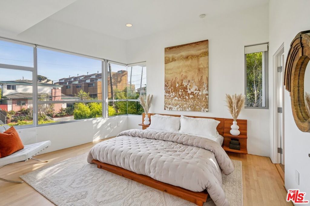 A rare opportunity to own a true architectural gem in one of Santa Monica's most desirable pockets. This front-facing architectural townhome by award-winning Santa Monica based architect Michael Folonis is where modern design meets an effortless coastal lifestyle in the coveted Ocean Park neighborhood. Privately gated and filled with natural light, it showcases expansive floor-to-ceiling windows, clean industrial lines, and a seamless indoor-outdoor flow. The open-concept living space extends to a sunlit patio perfect for relaxed mornings or intimate gatherings, while the sleek kitchen is outfitted with premium appliances, custom cabinetry, and a generous island. Upstairs, 3 spacious bedrooms offer comfort and privacy, including a tranquil primary suite with a spa-inspired bath and walk in closet. Crowning the home are 2 rooftop decks, offering dynamic views in every direction, enjoy serene mountains and iconic landmarks like Getty Museum on one side, and a refreshing peek-a-boo of the ocean on the other, creating the perfect backdrop from sunrise to sunset. Additional highlights include direct-access 2-car garage parking, dedicated storage, and thoughtfully integrated modern systems throughout. Nearby local parks like Hotchkiss Park and Joslyn Park, and the vibrant dining and shopping scenes along Main Street and Rose Avenue. This home offers the ultimate in convenience and lifestyle. Spend Sundays strolling to the nearby farmers market or enjoy effortless beach days just minutes away.