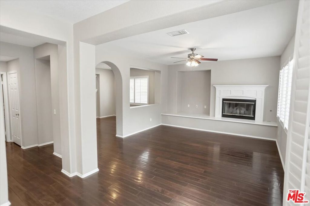 Beautiful three-bedroom home with a loft located in the highly desirable Alta Vista neighborhood of Valencia. This spacious home offers an inviting floor plan with hardwood flooring throughout the formal living room, dining room, and family room, along with shutters, recessed lighting, ceiling fans, and a cozy fireplace with a mantle and built-in entertainment niche.The kitchen opens to the family room and is designed for both everyday living and entertaining, featuring a center island, tile countertops, abundant cabinet space, and appliances that include a gas cooktop, single oven, microwave, dishwasher, and refrigerator. A sliding glass door leads to a private backyard with a stamped concrete patio, creating a comfortable outdoor space to enjoy.Upstairs, the loft offers flexible living space, shutters, and built-in shelving. The spacious primary suite includes two walk-in closets and an attached bathroom with dual vanities, a garden tub, and walk-in shower. Two additional bedrooms upstairs, one includes French doors that open to a balcony.Additional highlights include an upstairs laundry room with a full-size washer and dryer, extensive cabinet storage, a downstairs half bathroom, and a tandem garage. Residents can also enjoy community amenities including a pool, spa, and playground.This home is conveniently located near shopping, restaurants, schools, and the 5 Freeway.No pets. Tenants are required to obtain renters insurance. After viewing the property with a leasing agent, applications may be submitted online. Please do not disturb occupants. This is private property and no trespassing is permitted.