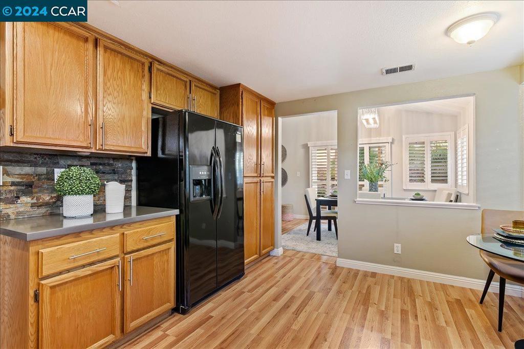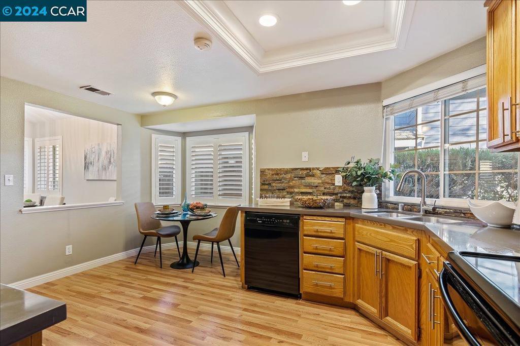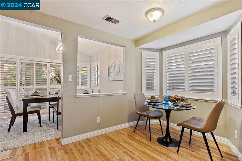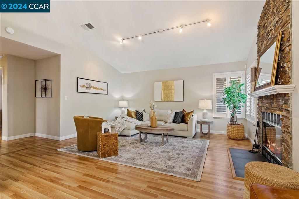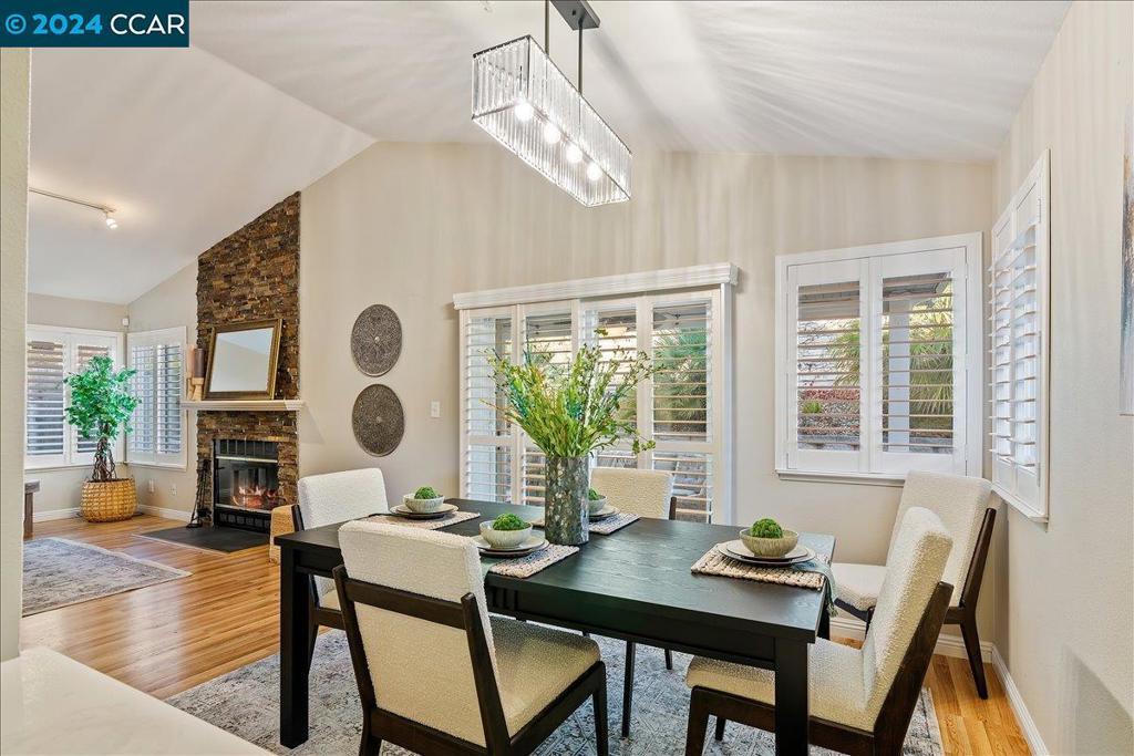 ELEGANT 3-bedroom, 2-bath single-story home in the Marina. The exterior was recently painted. Light-filled and open throughout, with laminate wood floors and gorgeous shutters throughout. The immaculate spacious kitchen includes an eat-in area, Corian countertop, a beautiful stone backsplash, and ample storage. The spacious formal dining room with a stylish light fixture opens to the large beautiful family room with a gorgeous stone fireplace and views of the private backyard. The guest hall bathroom has a shower over the tub. Serene Master suite retreat with bonus sitting area and large walk-in closet. Private low-maintenance backyard with stamped cement and covered patio area perfect for entertaining. Two-car garage with a sleek epoxy floor and washer/dryer included. Security system, Tesla solar (leased). The community has a large pool several hot tubs, and a large green belt overlooking the water. Walk to the Marina waterfront, boat dock, short walk to Old Town with restaurants, wine bar, California theater, annual seafood festival, car shows, 4th of July fireworks, and so much more. OPEN HOUSE January 4th & 5th from 1pm - 4pm