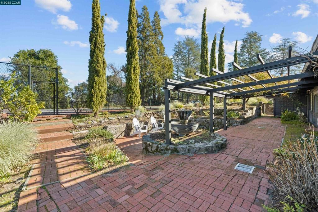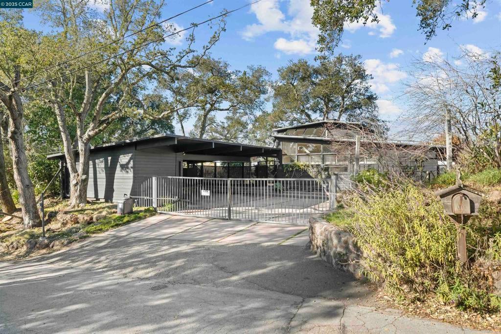 Mid-Century Sanctuary with Panoramic Views! This private Orinda residence features two parcels totaling .89 acres, offering a rare opportunity to live in the existing home or build your dream residence. The gated property provides single-story living with a storybook bedroom on the second-level. Beautiful details throughout, including views from every turn, concrete floors, exposed beams, high ceilings, floor-to-ceiling windows, radiant floors, interior and exterior sound system, spacious rooms, and ample storage. The tranquil setting boasts lush gardens, a courtyard, play areas, multiple seating areas, and an older tennis court that can be revitalized or transformed to suit your vision. Breathtaking views of the Orinda Hills, Upper Bay, Mt. Tamalpais and more. This home offers both convenience and community in a beloved neighborhood that is close to town, commute and top-rated schools. Per public record, home parcel .60 acre, tennis court parcel .29 acre.