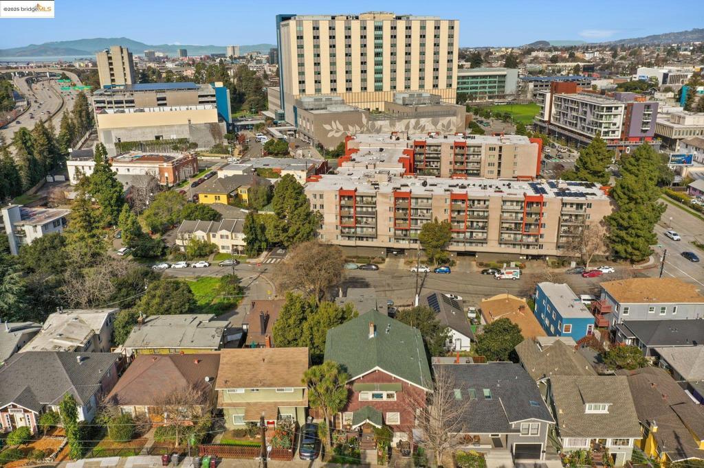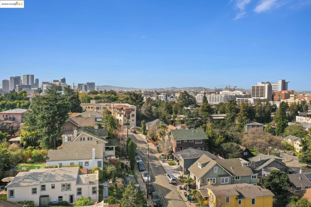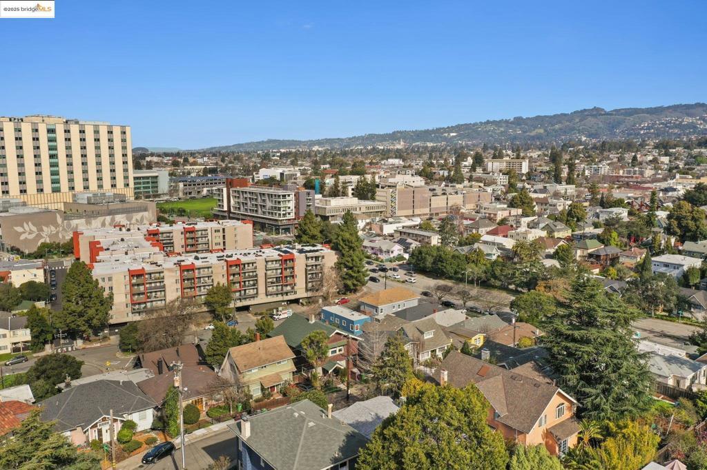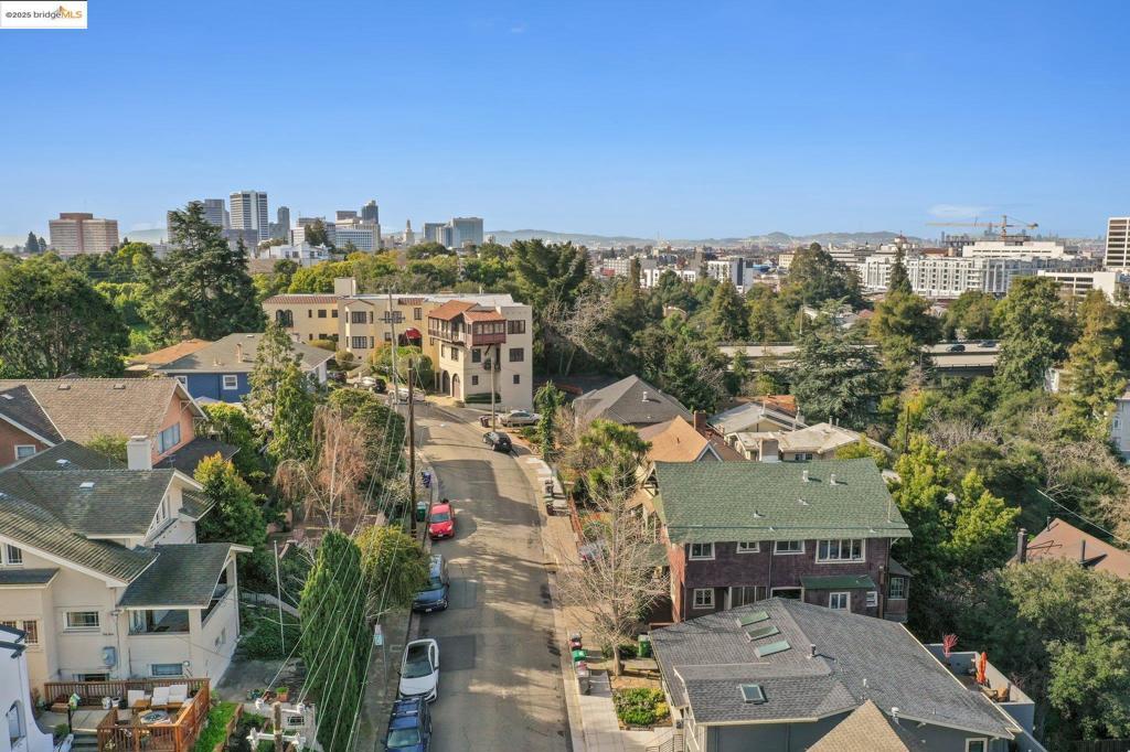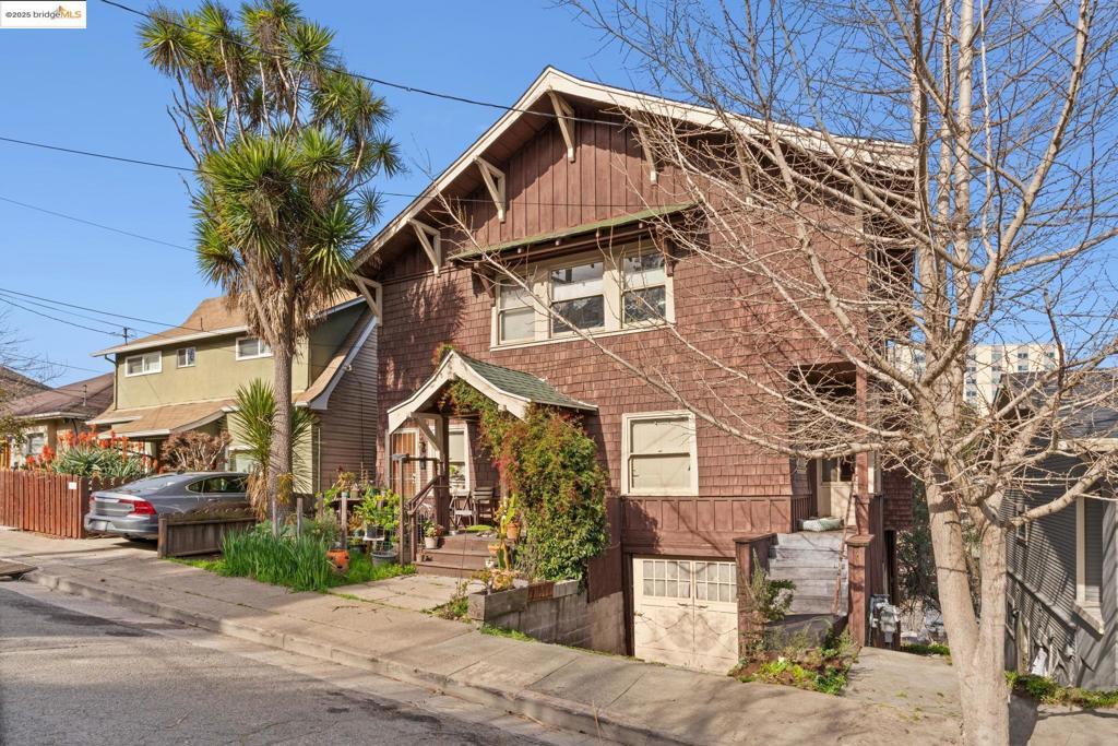 The upstairs unit has Old World charm, hardwood floors throughout, and views of the Oakland Hills. The downstairs unit has hardwood floors, a large mantle fireplace, an attached basement, and a garage. Located on a quiet street close to transportation and Piedmont Avenue, with a WalkScore of 81 based on its proximity to a large selection of cafes, restaurants, shops, Kaiser, and other businesses.