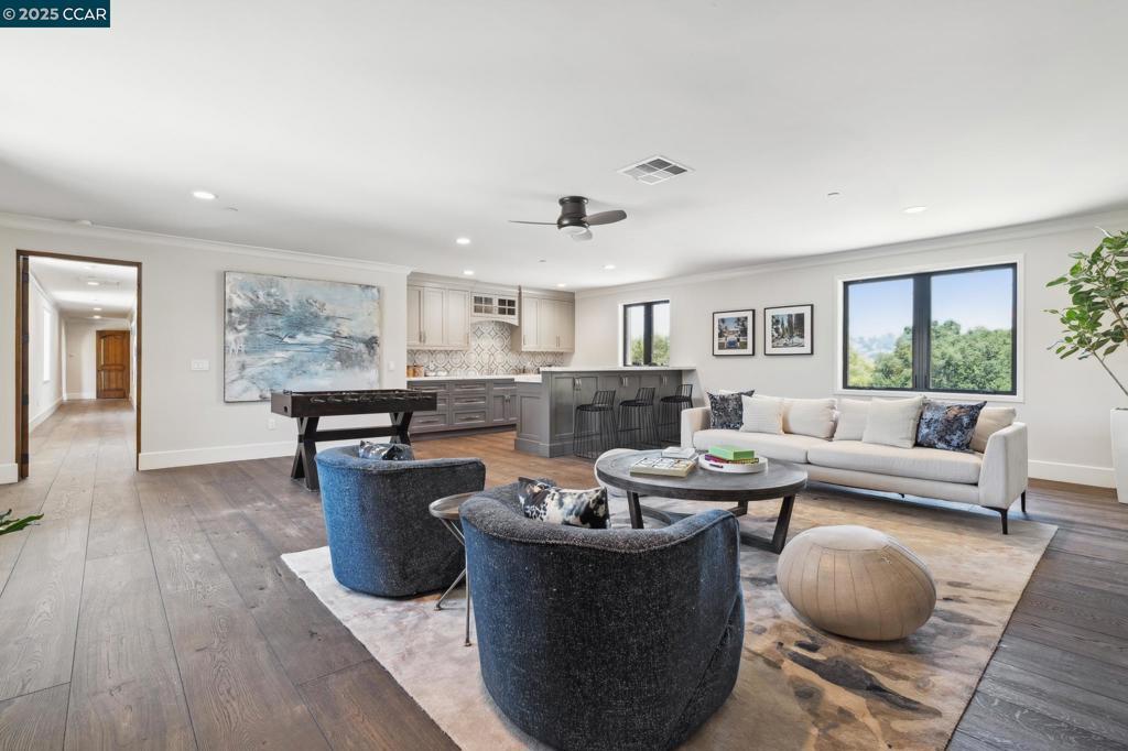 Villa Montecito is more than a home—it’s a private world crafted for those who cherish beauty, seclusion and the art of living exceptionally well. This hilltop 5-acre Santa Barbara-inspired compound offers sweeping panoramic views, masterful design and a lifestyle of effortless luxury, conveniently located mere minutes from downtown Alamo, 30 min. to SF and under an hour to Silicon Valley. A grand entry with fortress-style gates opens to a dramatic courtyard, with lush landscaping and serene water features. At the heart of the home, the great room stuns with exposed beams, double-height ceilings, and cascading chandeliers. Multiple sitting areas flow seamlessly into the dining space, backlit bar, and chef’s kitchen—perfect for both entertaining and intimate living. The primary suite offers a luxurious retreat with a stylish sitting area, spa-like bath, and spacious dual closets. Elsewhere, you'll find an 18-seat movie theater, private office, wine storage, pool table, and media/game rooms. Outdoors, the estate transforms into a resort-style escape with a sleek infinity-edge pool, spa, bocce court, water features and outdoor kitchen. The ADU and office offer additional living and working spaces. A 15-car showroom, workshop, and a 20-car motor court complete this sprawling home.