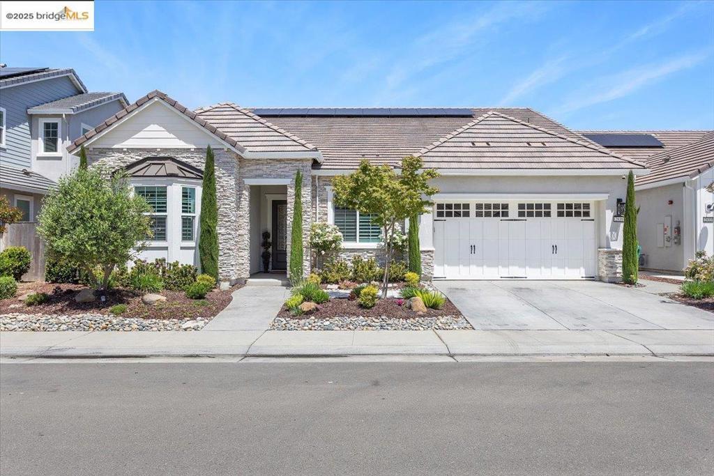 Thoughtfully designed single story home in the gorgeous Rose Gate II subdivision features an open concept layout w/a great room concept & the secondary bedrooms that are separate from the primary suite, keeping privacy in mind. Home offers high-end finishes that run throughout the home including GE Café appliances, owned solar, wood-look tile flooring, plantations shutters, custom millwork & built-ins, designer light fixtures, two tone paint, white shaker cabinetry & quartz countertops. The 10ft ceilings, along w/an abundance of windows & 4 panel sliding glass door keep the home light & bright. With added built-in cabinetry, large closets & overhead garage racks, there is plenty of storage. 4th bedroom is a flex space currently used as an office with desk & guest sofa sleeper. Both front & backyards are beautifully landscaped & there is a covered California room out back where you can cozy up to the hand-placed stacked stone fireplace while watching TV. Other outdoor upgrades include stonework on the front of the home & stamped concrete, stepping stones & a masonry retaining wall w/colorful plantings. This highly upgraded home is better than new! This charming neighborhood built by FCB Homes is surrounded by lush vineyards. Come find out why Rose Gate II is so highly regarded.