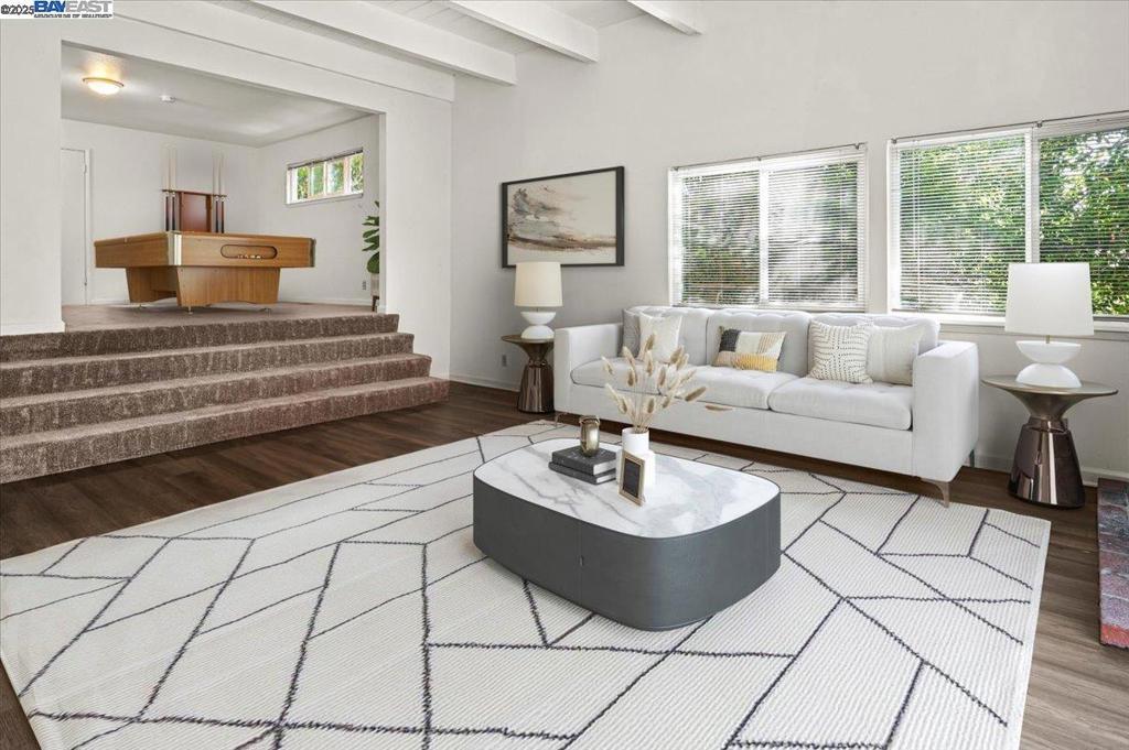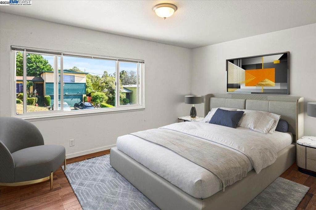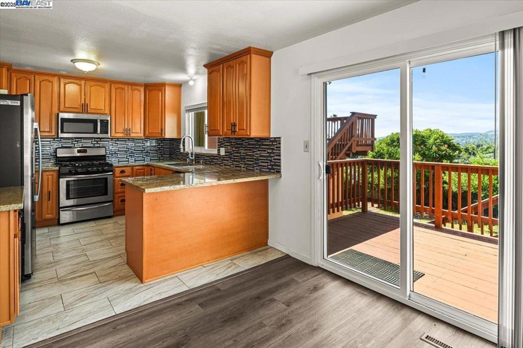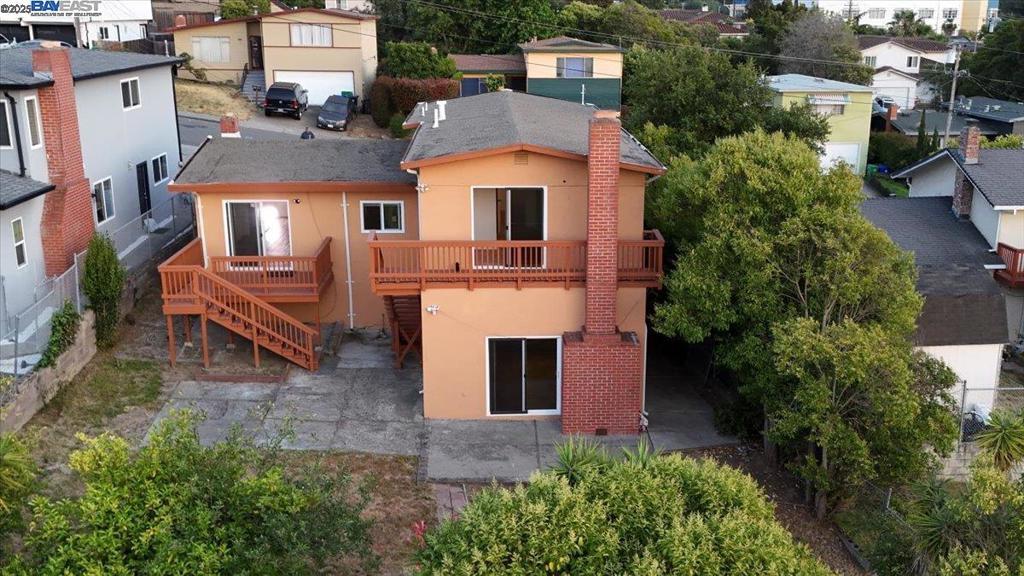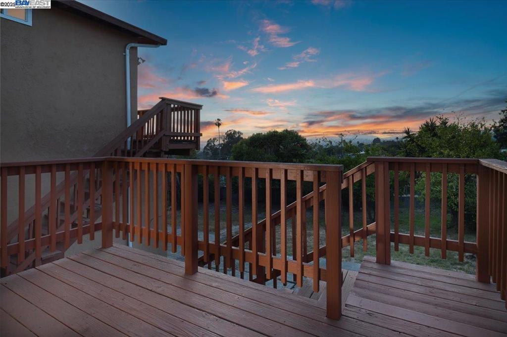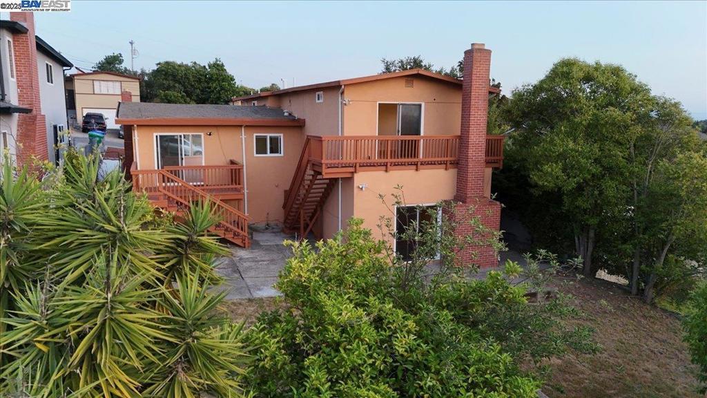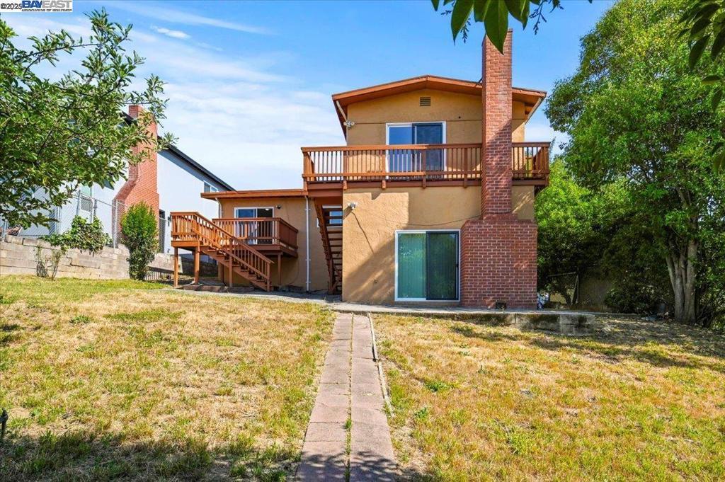 (Back-up offers welcome) In the Fairview district on a .15-acre lot, enjoy sunrise skies from the front, sunset views from the rear! With an updated kitchen, living room with fireplace PLUS an additional Great Room with high beamed ceilings and a 2nd fireplace, two primary bedrooms with en-suite bathrooms, this home is ideal for entertaining with its large yard and decking for daytime and evening enjoyment. Located in the hills with easy proximity to local parks, including the Lakeridge Park at the end of the block with views, Lake Don Castro Swim Lagoon a few blocks away for water recreation, picnics and barbecues. Shows well and needs a little TLC to repair damage from a leak but an amazing opportunity to get into a large home in the hills!