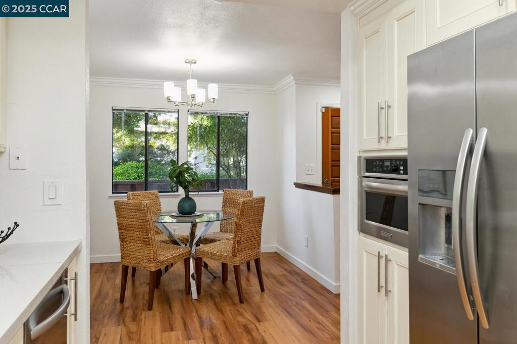 Gorgeous updated home in quiet Martinez location. This home has updated flooring, kitchen and bathrooms. You will love the rich colored flooring as you walk into this home. The updated kitchen is both beautiful and functional with Corian countertops, stainless steel appliances and glass tile backsplash. The Family room has plenty of room for fun and includes a modern in-wall fireplace which warms up the space. Upstairs you have the primary bedroom and bathroom along with 2 guest bedrooms and guest bath. The laundry unit is upstairs saving the trek up and down the stairs with laundry. A patio for private outdoor moments and a 2 car garage make this a great place to call home. The complex also includes tennis courts and a private swimming pool. All of this just minutes from the freeway.