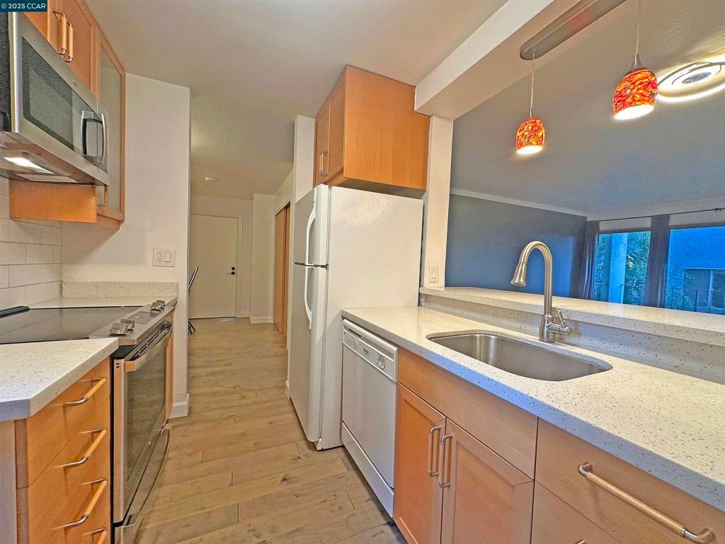 Price improvement! Great opportunity to own this lovely 1 bedroom, 1 bathroom condo! The living area feels bright and roomy with engineered wood floors and large windows that open to a balcony. The updated kitchen looks out into the living room and offers a newer stove/oven and microwave, a breakfast bar, lots of cabinets and enough counter space to make gourmet meals. The bedroom is roomy and has carpet and a ceiling fan The bathroom has been updated and has a good sized vanity and a separate tub/shower/toilet area. There is one assigned space in the secure underground parking garage. There is an elevator and on-site laundry. Wonderful location! Close to the beautiful Rose Garden, Lake Merritt, and to the shops and restaurants on Piedmont Avenue. Easy access to freeways, the SF Transbay Express and the casual carpool.