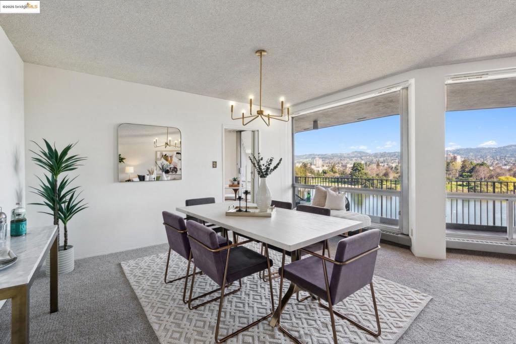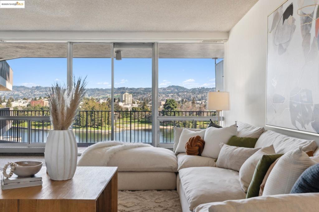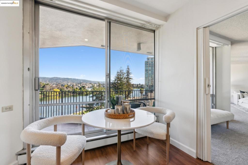 This spacious fifth floor CO-OP condo offers breathtaking, expansive views of Lake Merritt from every window, and from the long balcony that spans the length of the unit. The remodeled eat-in kitchen, fresh paint, new carpet, new modern light fixtures, and open living areas create a warm and inviting space to call home. Two spacious bedrooms have generous closets, and views, and there's ample hall closets as well. This luxe co-op unit includes one parking space, guest parking, bicycle storage, roof-top access. Water and heat included in dues. Also included are on-site management, maintenance & custodian staff, and 24-hr front desk concierge. $19M seismic retrofit in 2019. Enjoy walks around Lake Merritt, access near to BART, bus, restaurants, museum, and the farmers market. Truly an urban luxe lifestyle.