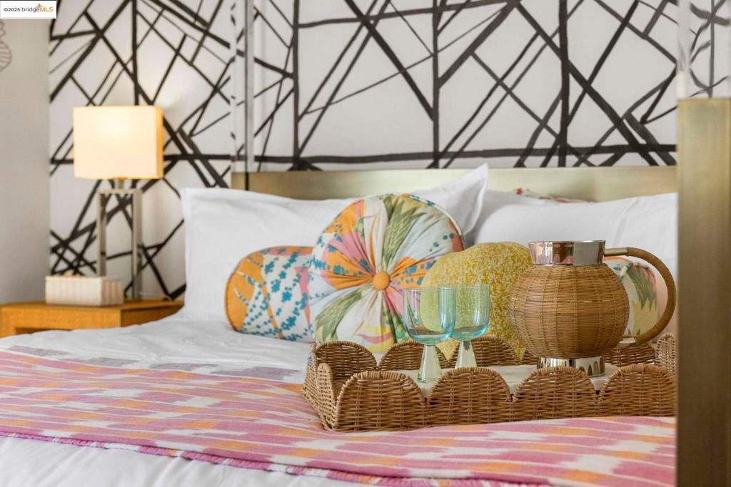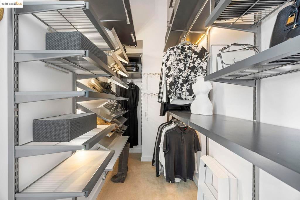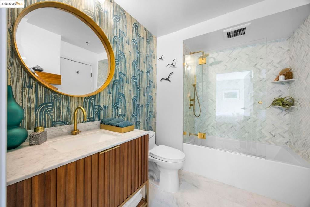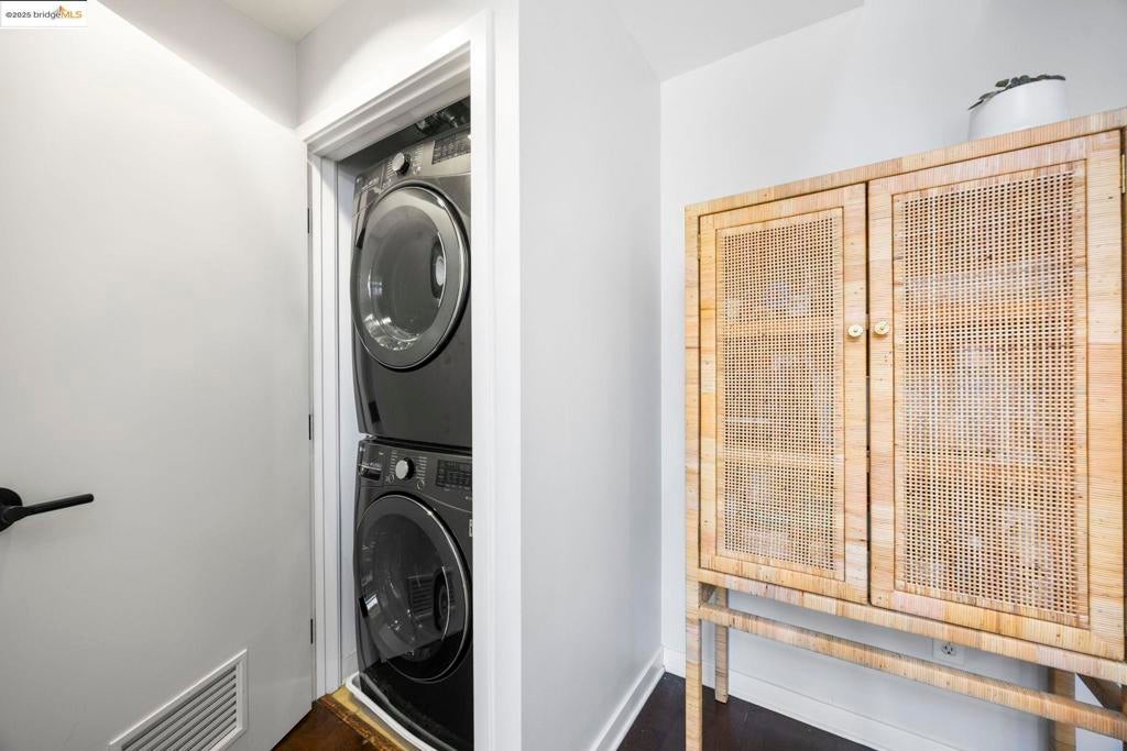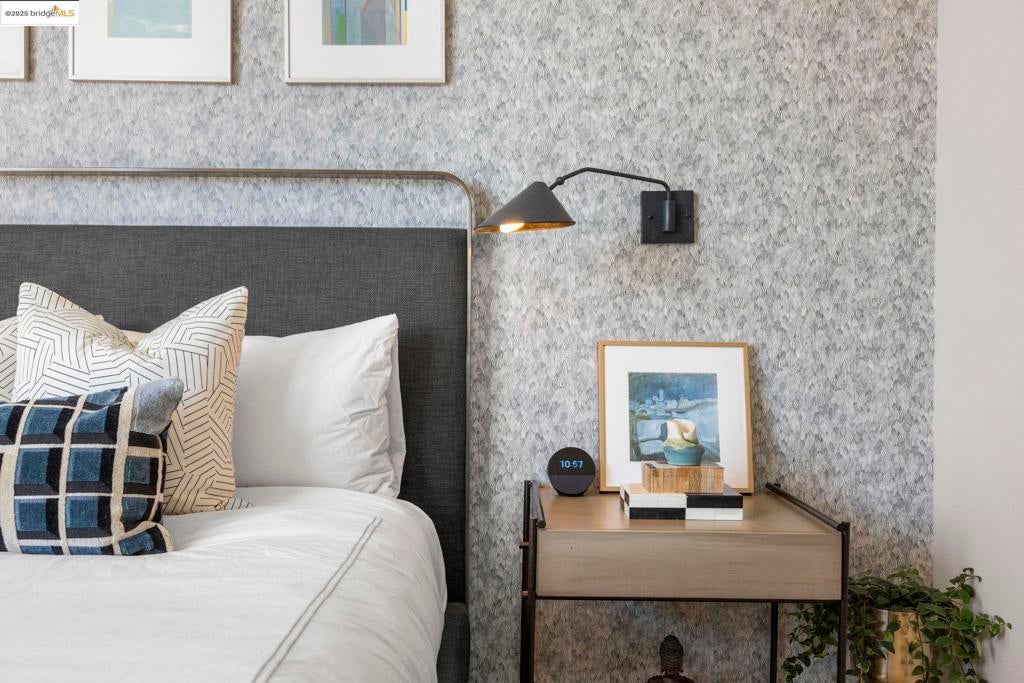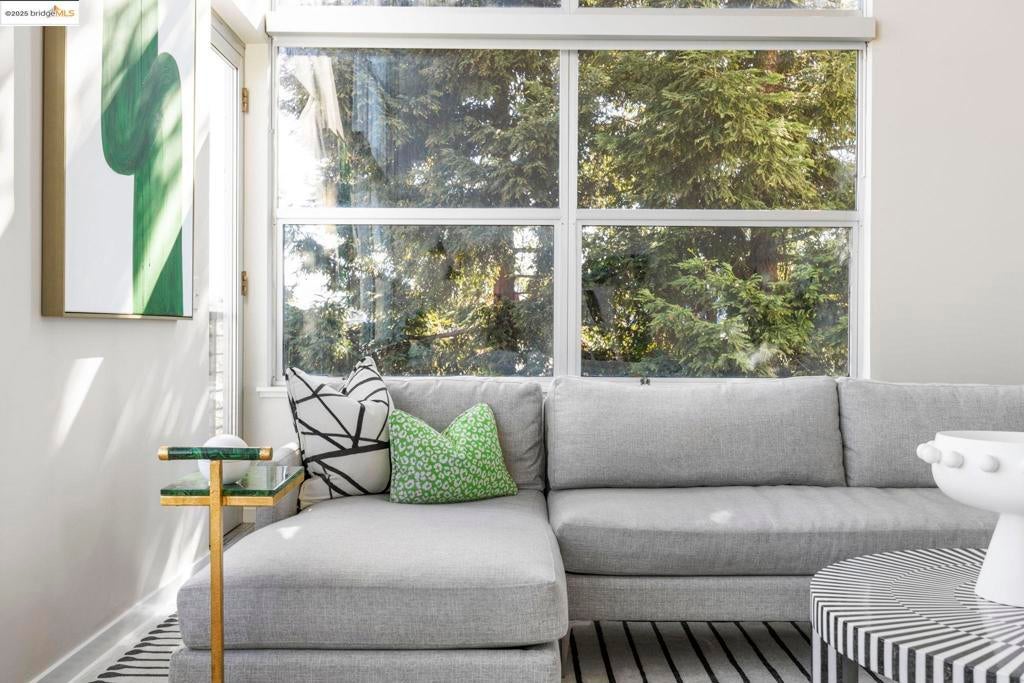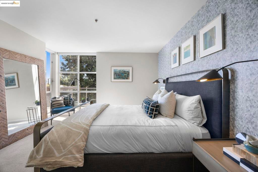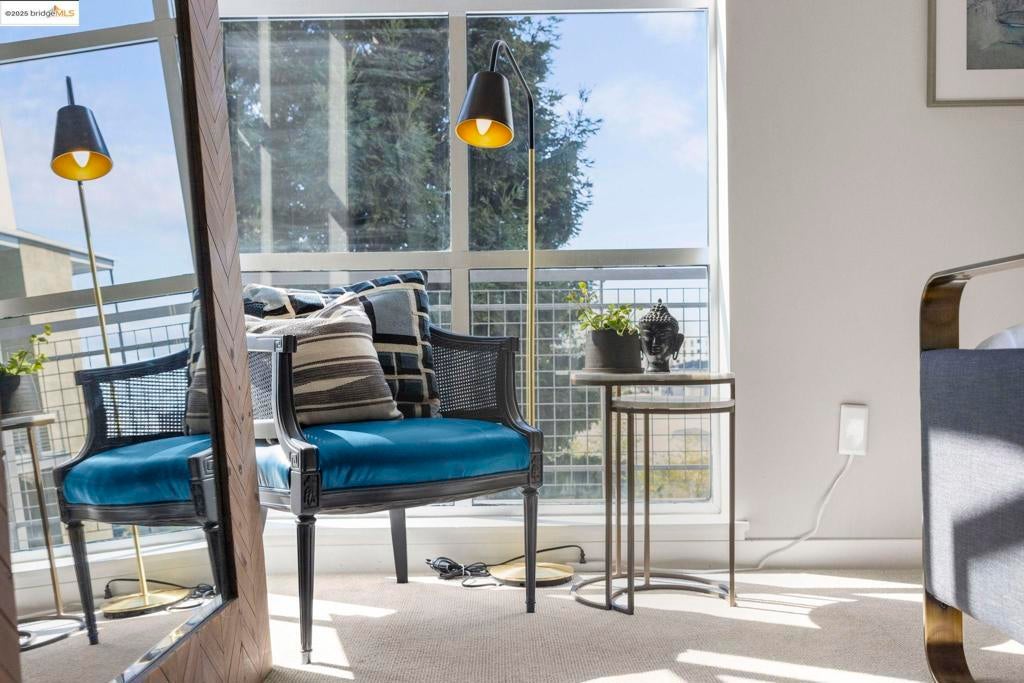 Coveted top-floor corner loft at GreenCity Lofts. The LEED-certified building is home to this 1BD+loft, 2BA residence featuring soaring 20+ ft ceilings and expansive windows that fill the space with light. No expense was spared in the professional renovation—every detail reflects modern luxury, thoughtful craftsmanship, and elevated living. Radiant-heated hardwood floors and curated finishes create a warm, refined atmosphere. The open kitchen is elegant and functional, with black stainless appliances, granite counters, marble backsplash, and a center island ideal for entertaining. The main level also includes a spa-like bathroom, in-unit laundry, and a peaceful enclosed bedroom tucked away for privacy. Upstairs, the versatile loft serves as a second bedroom, office, or creative retreat, complete with a custom walk-in closet and ensuite bath. Smart features include motorized roller shades and programmable thermostats, ready for your preferred automation system. Amenities include secure garage with RFID access, guest parking, two EV chargers, Amazon lockers, bike storage, and upgraded security. Steps from Bay Street, minutes to Temescal and Rockridge, with easy access to transit and freeways. Walk Score of 94. A rare blend of intentional design, natural light and prime location.
