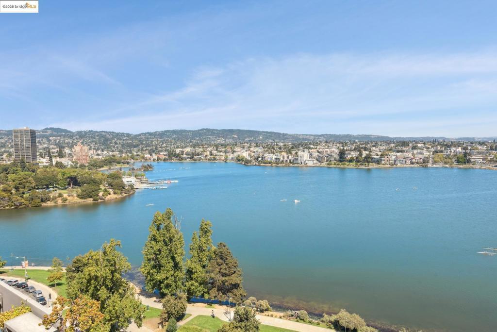 Experience one of Oakland’s premier addresses at the Lakeside Regency, a 1968 mid-century modern landmark designed by Michael Marx, AIA—an apprentice of Frank Lloyd Wright. This 19th-floor unit has stunning lake views and spans 1,300+ square feet. A wall of floor-to-ceiling windows draws you to the expansive front balcony with sweeping views of the Oakland skyline. The generous dining area flows easily from the living room, while both bedrooms, including an ensuite, offer a peaceful retreat. Both bathrooms have been tastefully updated. Enjoy the rare convenience of in-unit laundry. Additional upgrades include Hunter Douglas motorized blinds, pendant lighting, and carpet tile. Building amenities include 24-hour door service, a shared mezzanine, rooftop deck, and clubhouse. Deeded parking and private storage closet included. Pets welcome. Views: Downtown