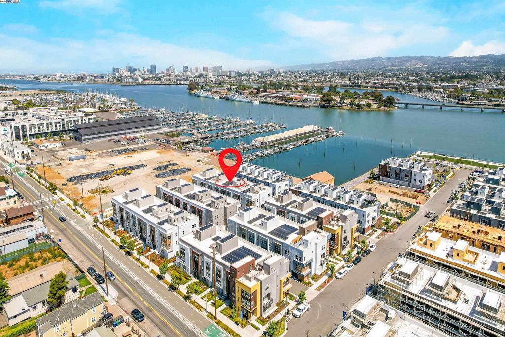 Step into the future of modern island living with this spacious 3-bedroom, 3.5-bath Island View Plan 6 townhome—one of the largest in the Island View collection at Alameda Marina. This corner unit offers nearly 2,200 sq ft of open-concept living and dining, a gourmet kitchen with Samsung appliances, quartz countertops, storage, a private balcony for indoor-outdoor enjoyment and featuring energy-efficient design. The luxurious primary suite includes a walk-in closet en-suite bathroom, while each secondary bedroom also has its own private bathroom. One bedroom suite is located downstairs on the ground floor. The home also has upstairs laundry, a 2-car garage with EV charging outlet, and solar panels installed. This nearly completed home offers move-in ready comfort with all selections installed, showcasing the Island View Plan 6’s thoughtfully designed spaces and premium finishes. Ask about our Home of the Week special builder promotion! Part of the Alameda Marina master-planned redevelopment, residents enjoy community parks, waterfront trails, the historic boathouse, and easy access to downtown Alameda, South Shore Beach, ferry/BART, and Oakland & SF. Views: Downtown