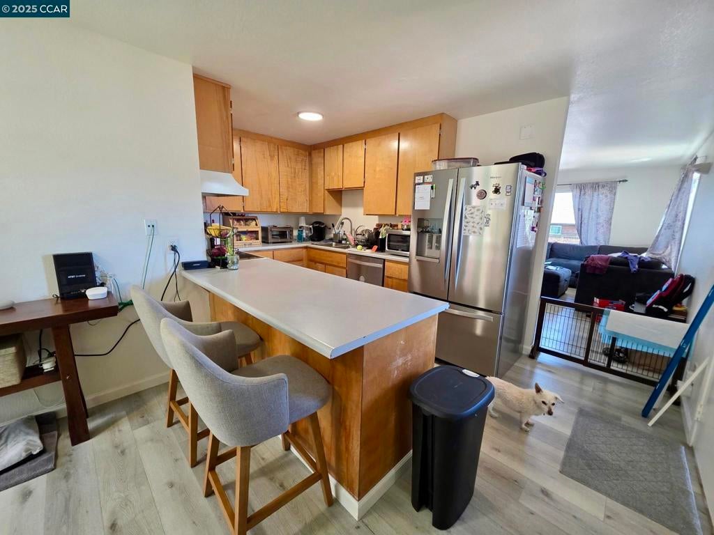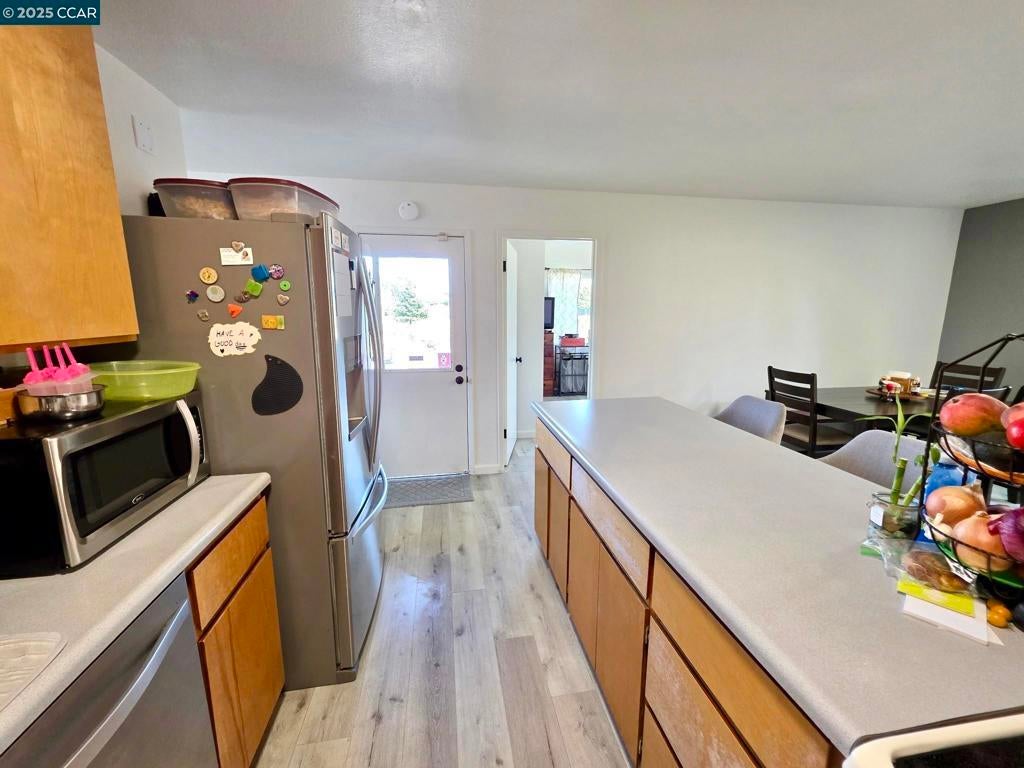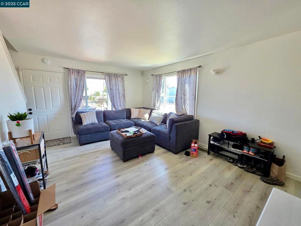 Well-maintained, spacious home features 4 bedrooms, 2 full baths, 1 bd, 1 bath downstairs, all appliances stay, including washer and dryer, dual pane windows, freshly painted inside, engineered wood floors throughout, newer roof, updated electrical panel, drip system in front yard, custom wood planter boxes stay, located near bart, hospital, and shopping, corner lot. Pride of ownership. Move-in condition.