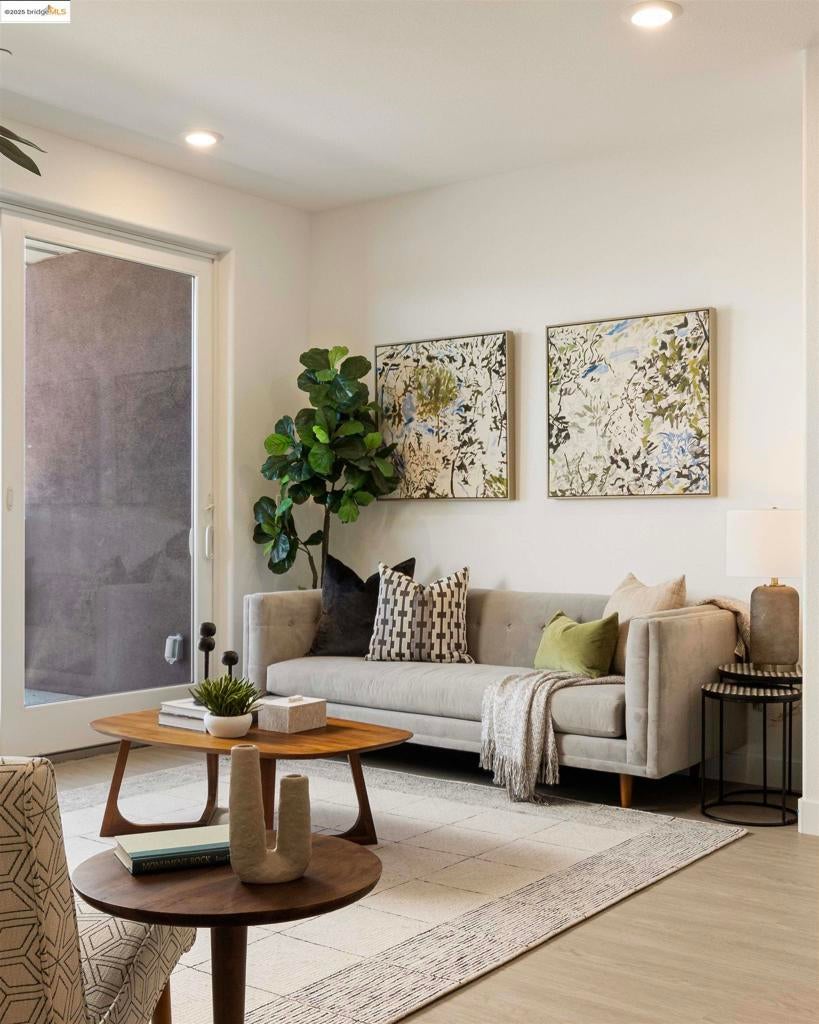 Turnkey new construction! This is a flat 1,369 square foot 2 bedroom 2 full bath and den home with a beautiful open floor plan and designer interior finishes. The floor plan features a spacious kitchen, living, and dining room area that opens onto a deck. There is a walk-in closet in the primary bedroom and more storage options throughout the home. The community will feature a dog park, overlook park, and a public walking trail within the community. Great location and a short walk to BART. Easy access to the 880 and 580 for commuters. Shopping and a variety of terrific restaurants are close by. Images shown are of a similar unit.