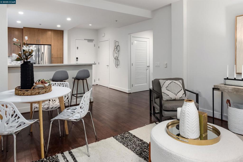 This condo qualifies for special loan programs! Contact listing agent for details. Amazing 2-bedroom, 2-bath condo in the heart of Uptown Oakland! Nestled in the centrally located Broadway Grand building, this home offers unbeatable access to top restaurants, shopping, the Paramount and Fox Theaters, the newly renovated YMCA, BART, and freeway connections. The spacious primary suite includes a walk-in closet, double vanity, and a private balcony overlooking the serene courtyard, giving you your very own oasis in the middle of urban living. The updated kitchen features stainless steel appliances such as a gas range and French door refrigerator with ice maker, along with upgraded countertops and backsplash, a deep farmhouse sink, and abundant cabinet space. Freshly painted throughout, the condo also comes with in-unit laundry, a secured garage with interior building access, one parking space with EV charging, and a dedicated locked storage area. Residents further enjoy peace of mind with evening onsite security. An exceptional opportunity to experience vibrant Uptown living with comfort, style, and convenience.