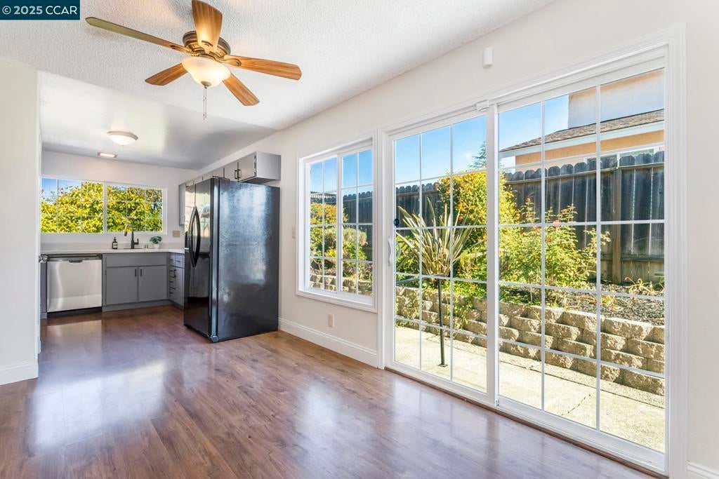 Welcome to 1769 Redwood, Hercules, CA 94547 – a charming and spacious 3-bedroom, 2-bath home offering 1,581 sq. ft. of comfortable living space. Step inside to vaulted ceilings, an open floor plan, and a bright living area that flows seamlessly into the dining and kitchen spaces. The kitchen features new quartz countertops, a modern sink, and a new dishwasher. Freshly painted inside and out, this home is truly move-in ready. The backyard is a lush private garden retreat with fruit trees including lemon, apple, plum, and peach, surrounded by mature roses, hibiscus, and drought-friendly succulents. An organic soil garden bed is ready for your seasonal vegetables. The front yard’s vibrant landscaping adds to the home’s beautiful curb appeal. Conveniently located near shopping, dining, schools, and major freeways—this Hercules gem offers the perfect blend of comfort, charm, and convenience.