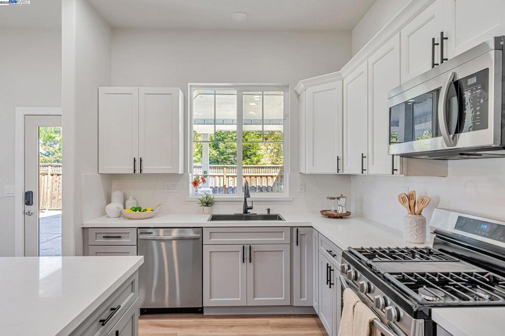 Located in Livermore’s sought-after Jensen neighborhood, 202 Sonia Way is a beautifully refreshed single-story that blends modern finishes with everyday comfort. Inside, wide-plank SPC luxury vinyl flooring, fresh interior/exterior paint, recessed lighting, new doors and closets, and energy-efficient double-pane windows create a bright, easy-living layout. The kitchen shines with all-new cabinetry, quartz counters with a full-height backsplash, stainless steel appliances including a gas range, and a built-in wine cooler. Both bathrooms are fully updated, highlighted by a spa-style primary retreat with a soaking tub. Comfort is turnkey with central A/C and heating, plus a fully paid-off solar system for lasting energy savings. Outside, a drive-in carport pairs with a detached 2-car garage featuring epoxy-coated floors, while the generous backyard offers mature fruit trees—perfect for relaxing or entertaining. Tucked on a quiet street steps from walking trails and multiple community parks, and minutes to shopping conveniences and major freeways, this turnkey home delivers style, efficiency, and prime Livermore living.