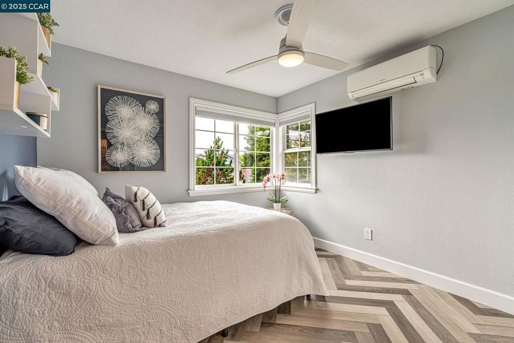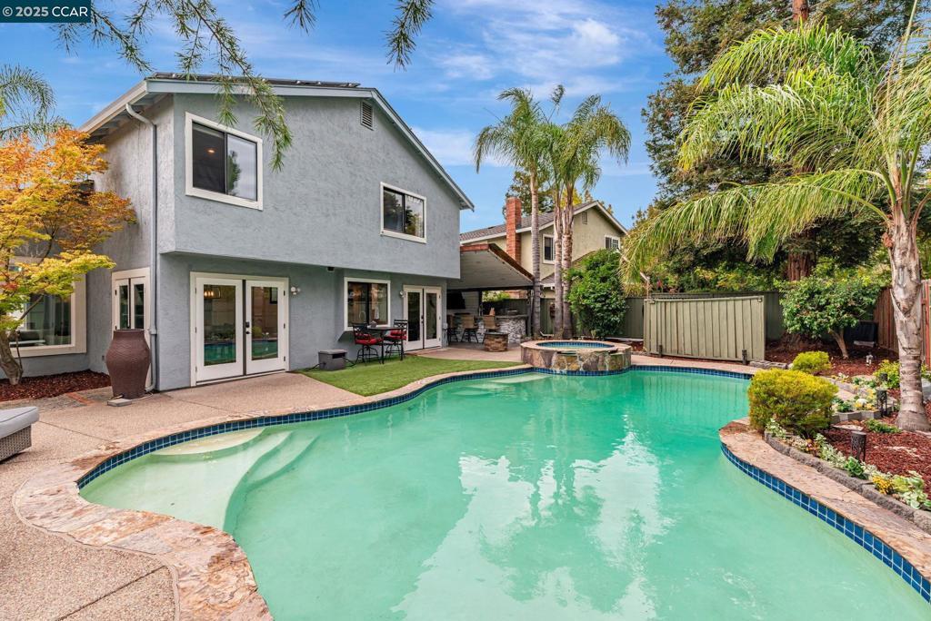 Tucked into Martinez’s Shannon Hills, this beautifully updated contemporary pairs easy everyday living with true resort vibes. An open, light-filled layout with a large primary suite featuring a walk-in closet and a fully remodeled spa like bathroom with dual shower heads. Out back, entertain year-round in your private oasis: heated pool and spa, a built-in outdoor kitchen/BBQ—all set against open space with no rear neighbors and direct trail access. Mountain-view sunsets are the cherry on top. Thoughtful upgrades keep comfort and costs in check: owned solar, smart thermostat, multiple high-efficiency HVAC options (including a whole-house fan), and two thermostat-controlled gas fireplaces. Each bedroom has individual temperature control—perfect for personalized comfort.