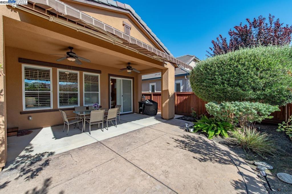 Welcome to Trilogy Vineyard, a premier gated 55+ community offering luxury living and endless amenities; multiple private pools, spa, event center, concert grounds, bocce, tennis, pickleball, and more! This immaculate 2 bedroom, 2 bath home features neutral flooring, custom shutters, recessed lighting, and carpeted bedrooms with ceiling fans. The spacious primary suite boasts a large walk-in closet, double vanity with custom wood cabinets, and an oversized shower with built-in bench. The chef’s kitchen shines with stone countertops, a generous center island with bar seating, and stainless steel appliances. Laundry room with custom desk space and abundant storage sits just off the attached 2-car garage. Enjoy a private backyard oasis with retractable covered patio, lush landscaping, and mature trees, all maintained with care. Energy-efficient owned SOLAR completes this move-in ready gem!