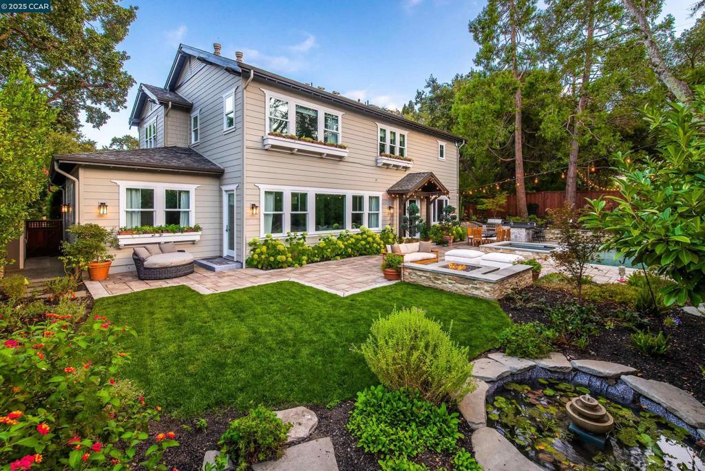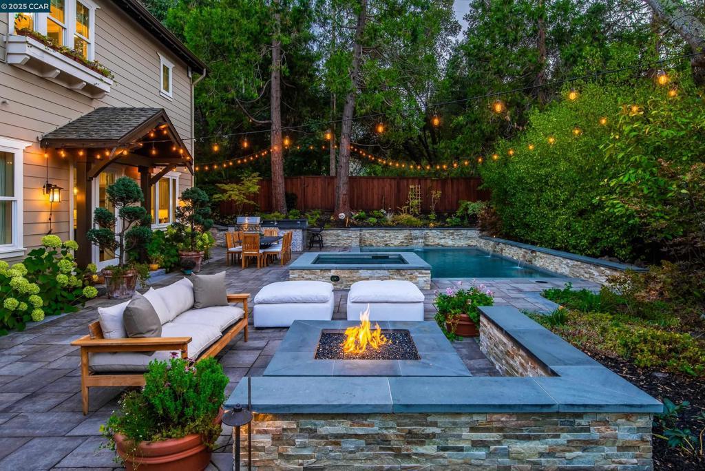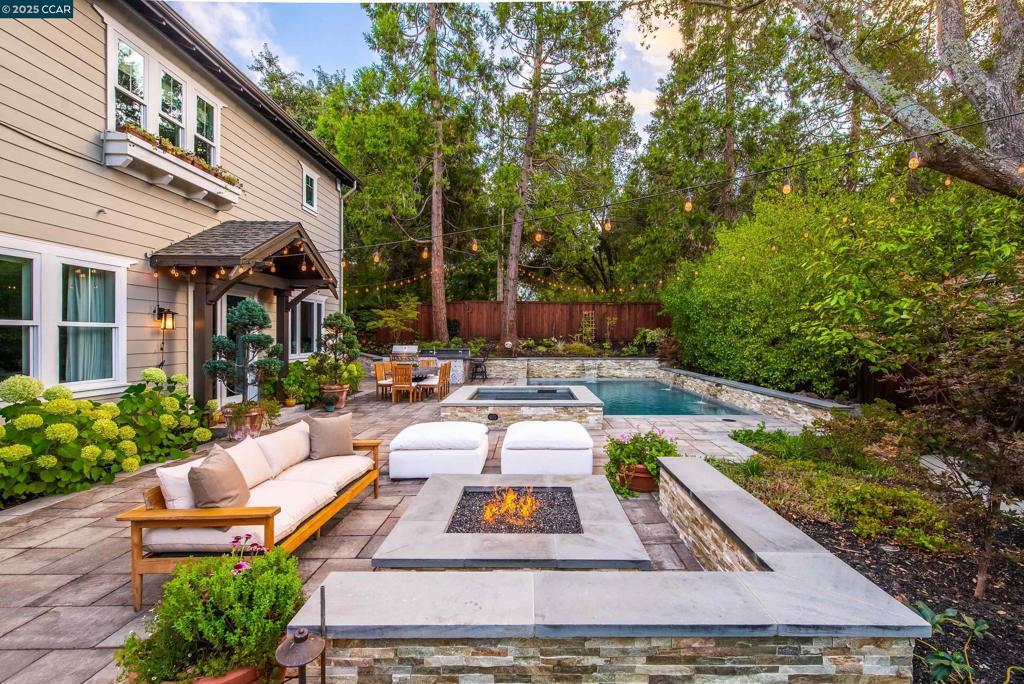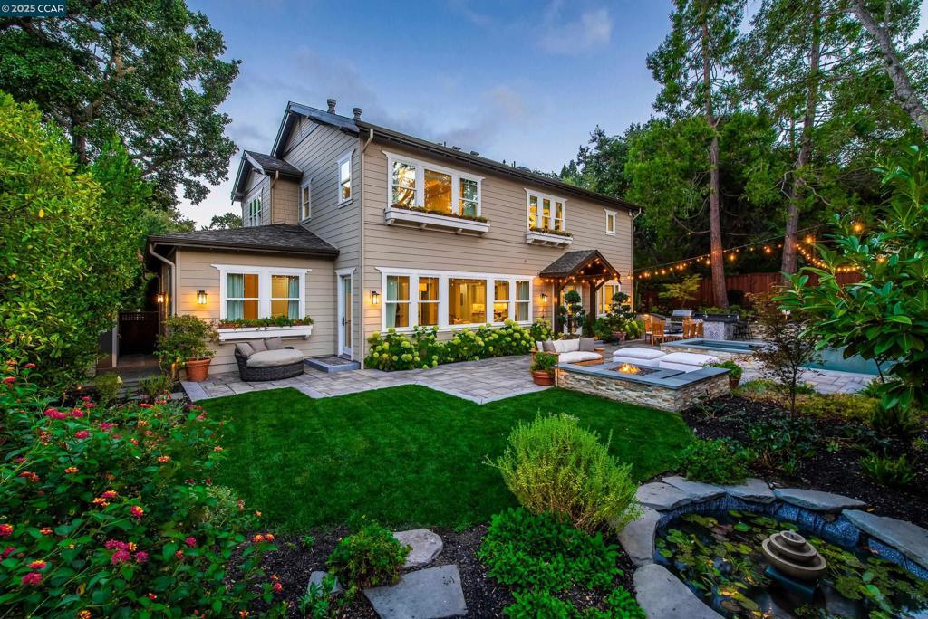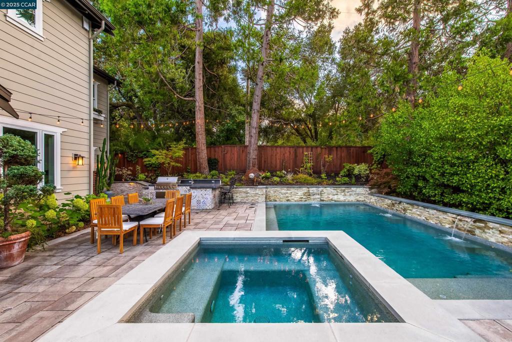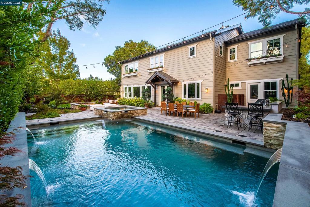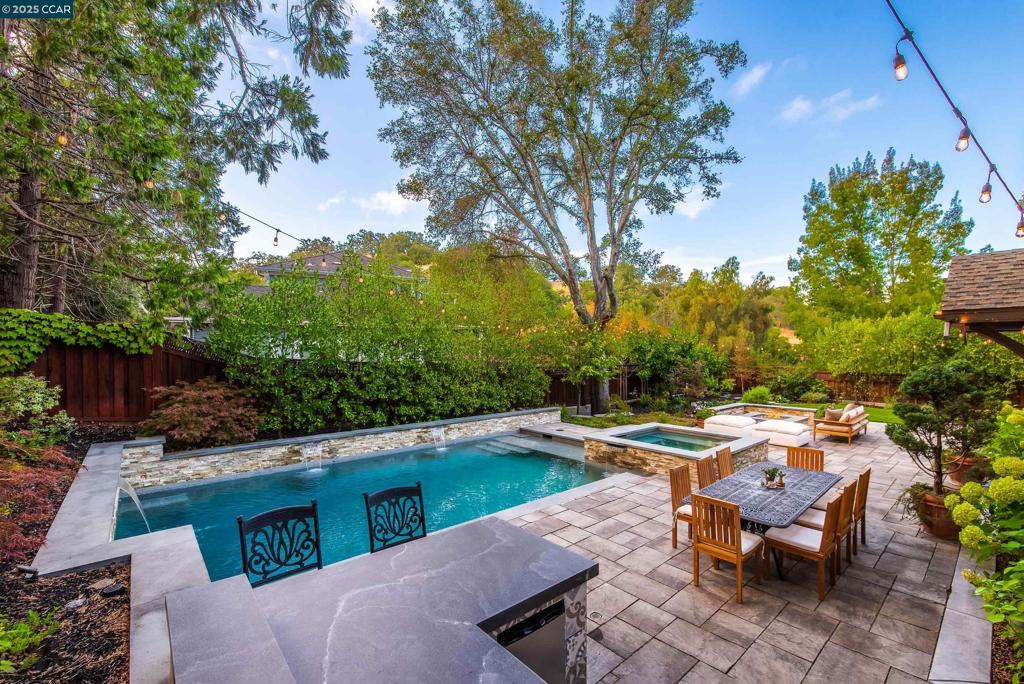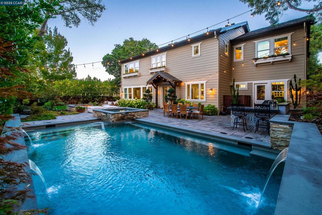Experience resort-style living in this immaculately maintained Lafayette retreat, where serenity, sophistication, and everyday luxury converge. A dramatic entry opens to a formal living room, elegant dining room with butler’s pantry, and a 250+ bottle wine cellar. The chef’s kitchen features a large center island with bar seating, stainless steel appliances, dual sinks, and walk-in pantry, seamlessly flowing to the informal dining area and expansive family room. The main level also offers a private guest suite, full bath, powder room, and mudroom. Upstairs includes a secondary family room, three bedrooms, two baths, and a luxurious primary retreat with a spa-inspired bath and dream walk-in closet. Additional highlights include a large laundry room and an oversized four-car garage with a second laundry and extensive storage. Outside, enjoy a PebbleTec pool & spa with waterfalls and ledge seating, expansive paver patio, a gas firepit beneath string lights, a fully equipped outdoor kitchen with bar seating, prep sink, BBQ, and fridge. Lush gardens, level lawns, a tranquil pond, planter-box windows, and a welcoming front porch complete this cul-de-sac sanctuary. Just moments from Briones trails, scenic walking paths, and enjoys top rated Lafayette schools!