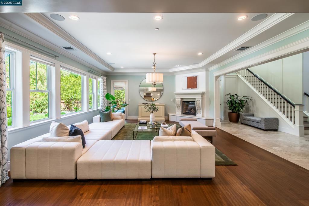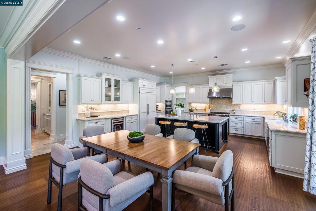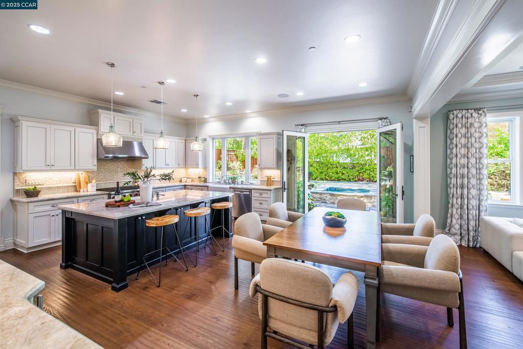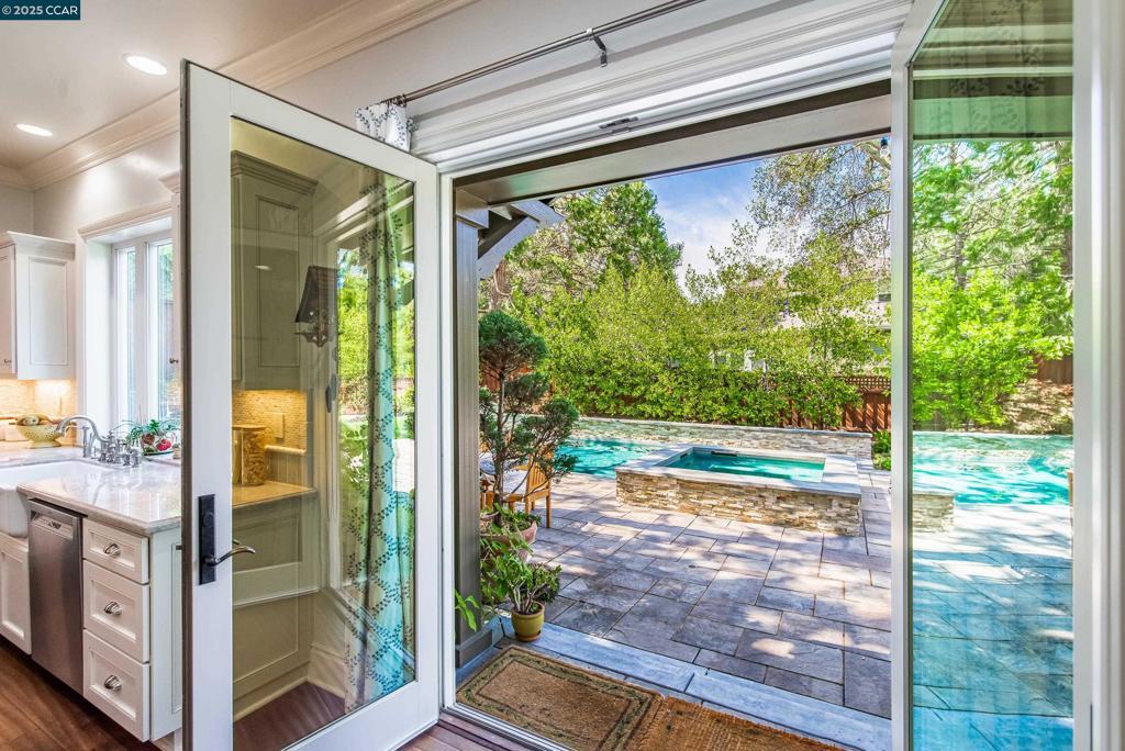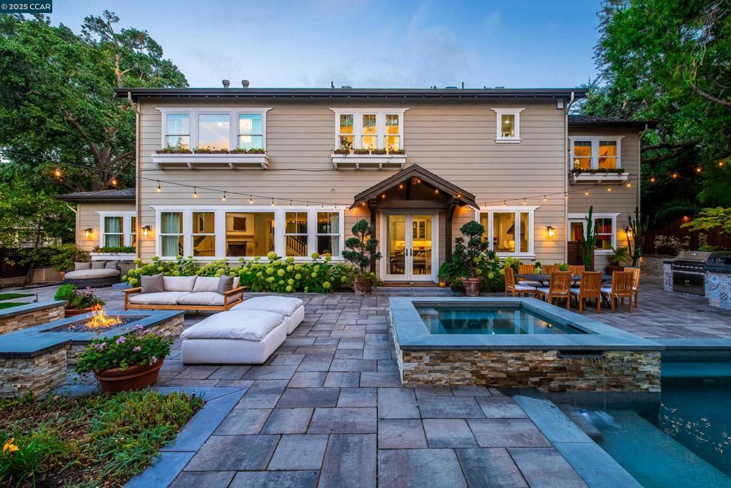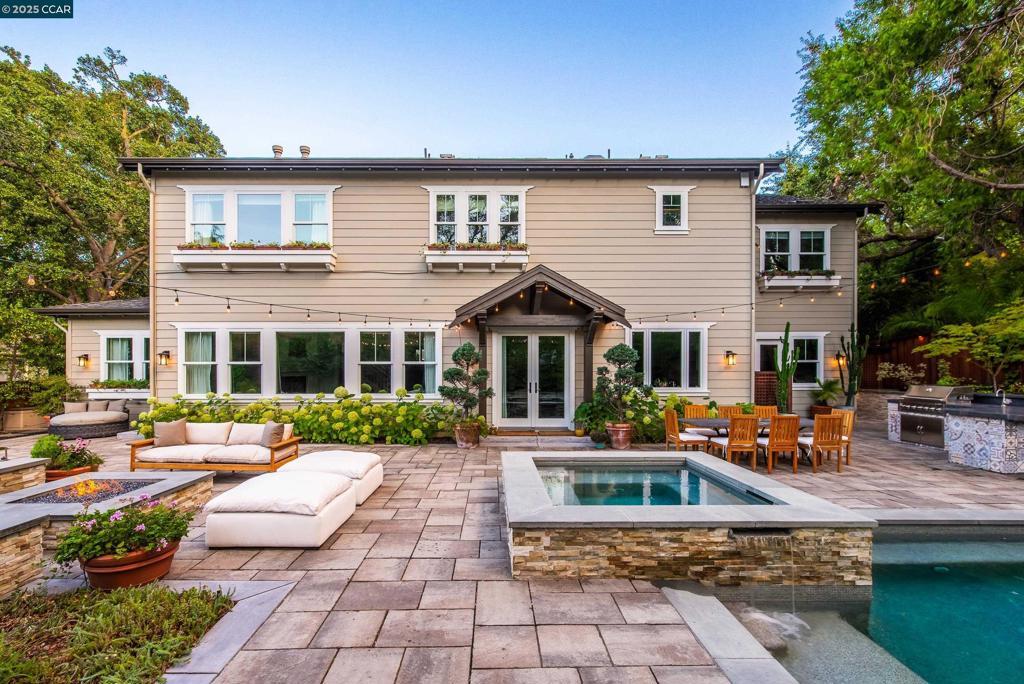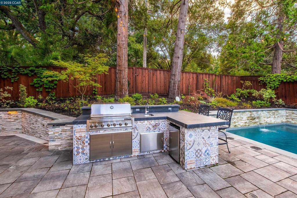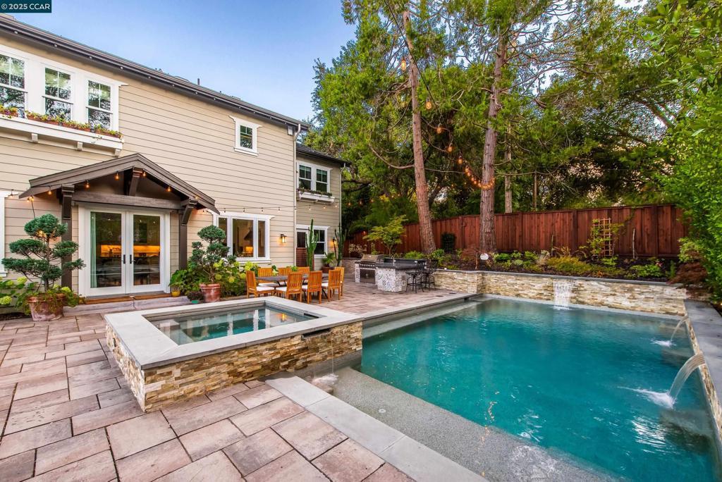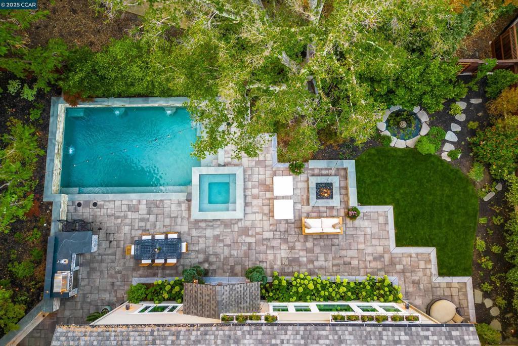 Experience resort-style living in this immaculately maintained Lafayette retreat, where serenity, sophistication, and everyday luxury converge. A dramatic entry opens to a formal living room, elegant dining room with butler’s pantry, and a 250+ bottle wine cellar. The chef’s kitchen features a large center island with bar seating, stainless steel appliances, dual sinks, and walk-in pantry, seamlessly flowing to the informal dining area and expansive family room. The main level also offers a private guest suite, full bath, powder room, and mudroom. Upstairs includes a secondary family room, three bedrooms, two baths, and a luxurious primary retreat with a spa-inspired bath and dream walk-in closet. Additional highlights include a large laundry room and an oversized four-car garage with a second laundry and extensive storage. Outside, enjoy a PebbleTec pool & spa with waterfalls and ledge seating, expansive paver patio, a gas firepit beneath string lights, a fully equipped outdoor kitchen with bar seating, prep sink, BBQ, and fridge. Lush gardens, level lawns, a tranquil pond, planter-box windows, and a welcoming front porch complete this cul-de-sac sanctuary. Just moments from Briones trails, scenic walking paths, and enjoys top rated Lafayette schools!