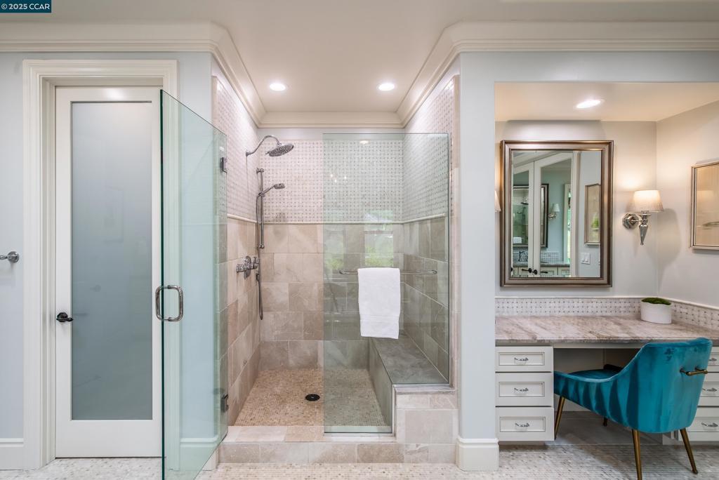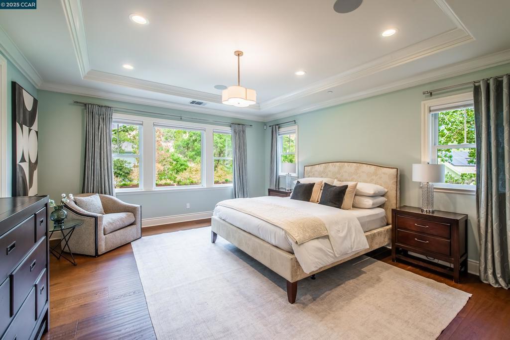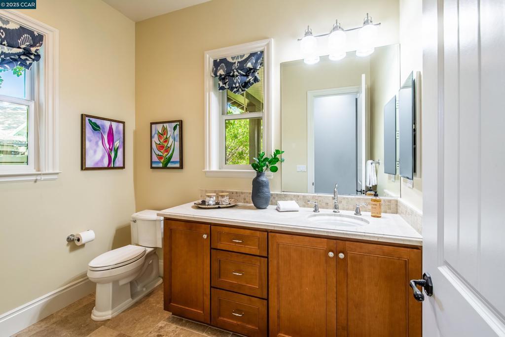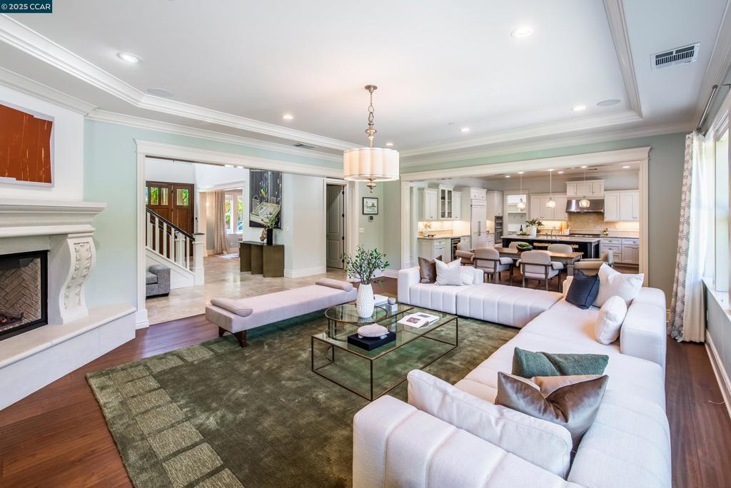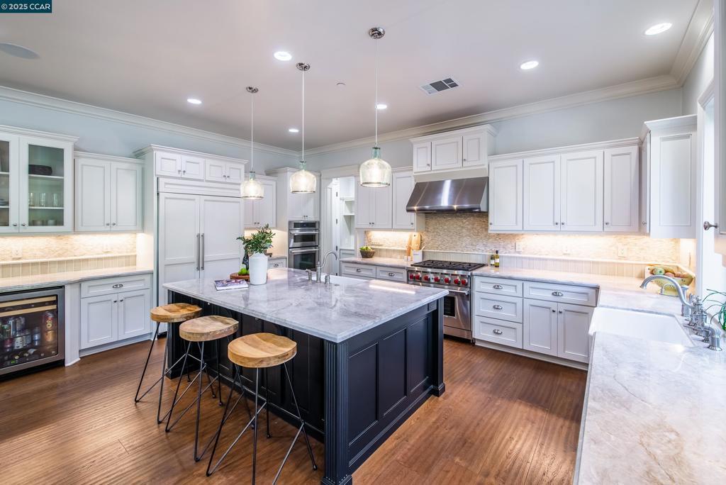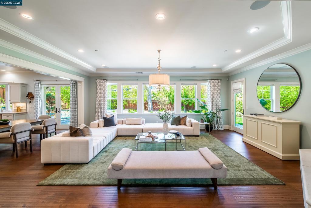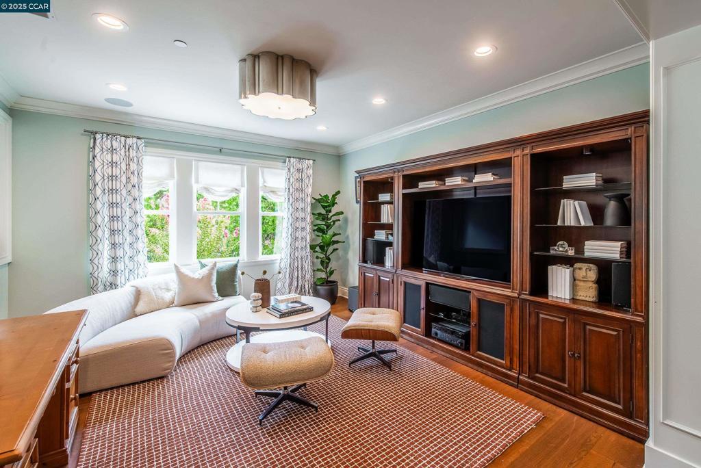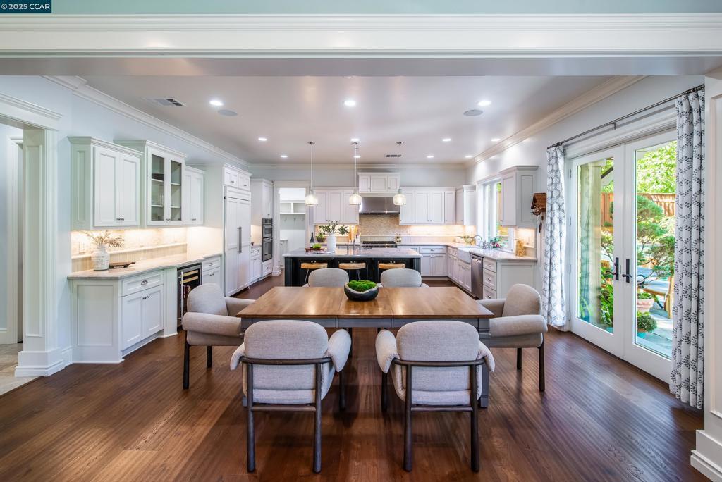 Experience resort-style living in this immaculately maintained Lafayette retreat, where serenity, sophistication, and everyday luxury converge. A dramatic entry opens to a formal living room, elegant dining room with butler’s pantry, and a 250+ bottle wine cellar. The chef’s kitchen features a large center island with bar seating, stainless steel appliances, dual sinks, and walk-in pantry, seamlessly flowing to the informal dining area and expansive family room. The main level also offers a private guest suite, full bath, powder room, and mudroom. Upstairs includes a secondary family room, three bedrooms, two baths, and a luxurious primary retreat with a spa-inspired bath and dream walk-in closet. Additional highlights include a large laundry room and an oversized four-car garage with a second laundry and extensive storage. Outside, enjoy a PebbleTec pool & spa with waterfalls and ledge seating, expansive paver patio, a gas firepit beneath string lights, a fully equipped outdoor kitchen with bar seating, prep sink, BBQ, and fridge. Lush gardens, level lawns, a tranquil pond, planter-box windows, and a welcoming front porch complete this cul-de-sac sanctuary. Just moments from Briones trails, scenic walking paths, and enjoys top rated Lafayette schools!