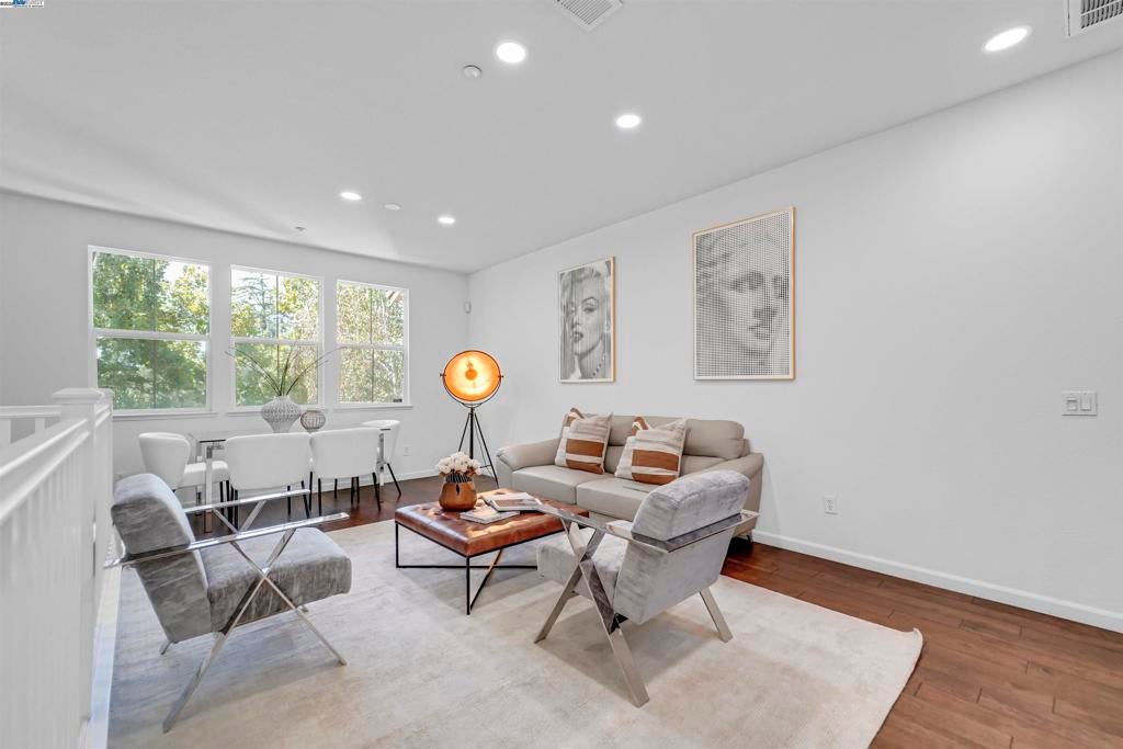 COMMUTER'S DREAM HOME. LOCATION + HOUSE!!! Bright and airy living space with modern floor plan. HIGH CEILING and EXPANSIVE FAMILY ROOM, with a bonus reading area, also perfect as an office on ground level. The open-concept layout features a spacious living and dining area filled with natural light, while the tastefully updated kitchen sparkles with ELEGANT QUARTZ COUNTERTOPS AND BACKSPLASH, stainless steel appliances, a large pantry, breakfast bar, and abundant cabinetry—perfect for everyday living and entertaining. ONE BEDROOM WITH FULL BATHROOM ON SECOND LEVEL, ideal for multi-generational living. Luxurious primary suite boasts dual closets, a walk-in closet, and an en-suite bathroom with dual vanities. Additional highlights include recessed lighting, dual-pane windows, and plentiful storage cabinets. The attached TWO CAR SIDE-BY-SIDE GARAGE provides ample parking. LOW HOA. Close to Berryessa BART, Light Rail, major freeways, groceries, shopping, dining, parks, and top Silicon Valley employers. BEST VALUE FOR YOUR MONEY.