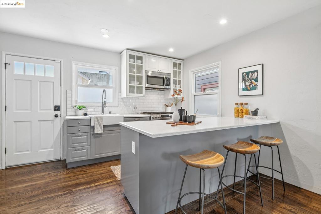 Tucked within a boutique four-unit HOA, this thoughtfully upgraded two story townhome is move-in ready and brimming with charm. Inside, you’ll find a beautifully remodeled kitchen and bath, gleaming hardwood floors, a custom gas fireplace insert, and a mini split with AC—making the space as functional as it is inviting. Sunlight streams through the windows, creating a bright, welcoming atmosphere throughout. Everyday living is effortless with in-unit laundry, generous attic storage, and your own dedicated bike shed, complete with a succulent garden perched on top. A private parking space in the paved driveway and low HOA dues add even more convenience. Set in the heart of Temescal, this home places you at the center of Oakland’s most dynamic neighborhood. Savor brunch at Brenda’s or Homeroom, grab tacos at Cholita Linda, or stock up at Whole Foods just blocks away. MacArthur BART is less than a mile from your door for an easy commute, while a quick 10-minute walk brings you to the eclectic mix of cafés, boutiques, and dining along Piedmont Avenue. Whether you’re searching for a stylish pied-à-terre or a low-maintenance home base, this townhome delivers comfort, community, and connection in one of Oakland’s most vibrant locales.