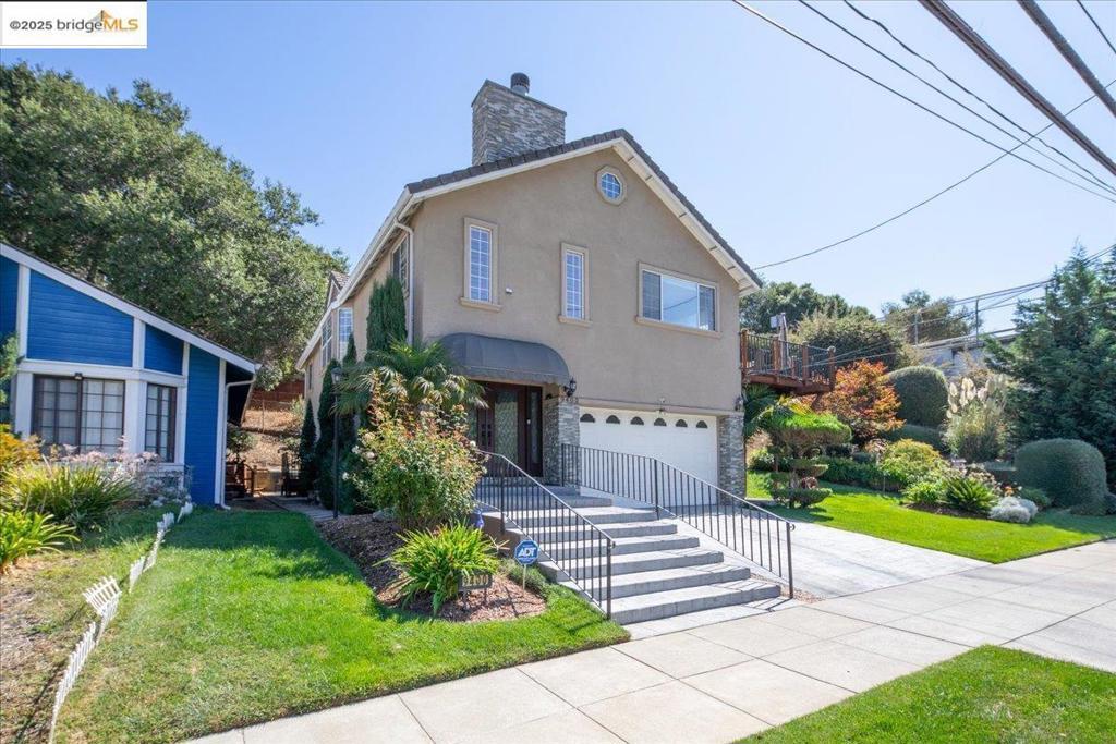 Welcome to this beautifully remodeled residence in Oakland’s highly sought-after Grass Valley neighborhood. This stunning home features an expansive main living level, perfect for entertaining and currently styled as a sophisticated gathering space. The chef’s kitchen is the heart of the home, anchored by gleaming Carrara countertops and enhanced by premium flooring throughout. On cooler evenings, cozy up beside the fireplace as soft, ambient light fills the space, creating a warm and inviting atmosphere. First Floor: The entry level offers a garage with interior access, dedicated storage space, a comfortable living area, a full bathroom, and two well-appointed bedrooms—ideal for guests, extended family, or flexible work-from-home needs. Second Floor: Upstairs, enjoy the open-concept kitchen, living, and dining areas, along with three additional bedrooms. Two full bathrooms are located on this level, including a luxurious primary bath featuring a skylight and jetted tub. Step outside to a spacious private deck that leads down to the yard via elegant spiral stairs—perfect for seamless indoor/outdoor living. With a prime location near Knowland Park and easy access to the 580 freeway, this home offers the perfect combination of elevated style, comfort, and convenience.