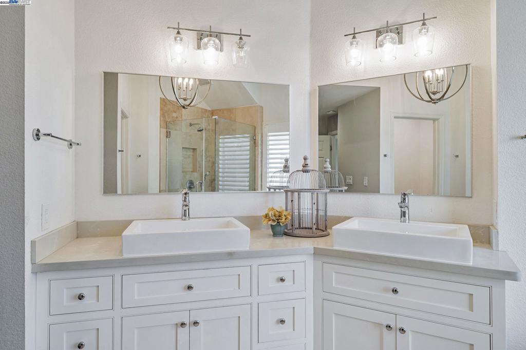 Live the Resort Lifestyle in Prestigious Canyon Lakes. Experience exclusive 24-h gated Canyon Lakes community of San Ramon. This upscale neighborhood offers an array of amenities including scenic lakes, a clubhouse, meandering greenbelts, playgrounds, sparkling pools, a relaxing spa, tennis courts, and BBQ areas—perfect for both recreation and relaxation.This beautifully updated home features an unique, light-filled design that feels airy and inviting. The gourmet kitchen boasts upgraded cabinetry, stylish light fixtures, natural stone countertops, and a double-oven range—ideal for cooking and entertaining. A cozy breakfast nook is the perfect spot to enjoy your morning coffee or a quick meal. Upstairs, you’ll find two spacious bedroom suites, each with a walk-in closet and a luxurious bathroom. Both baths offer dual sinks; one includes a sleek walk-in shower while the other features a freestanding soaking tub. A versatile open loft can serve as a site for 3rd bedroom, study, or entertainment space.The private backyard provides a serene retreat, while the front yard is maintained by the HOA for effortless living. Conveniently located near top-rated schools, shopping, fine dining, farmers markets, library.. Lots to explore from this beautiful home, Canyon Lake Community and city.